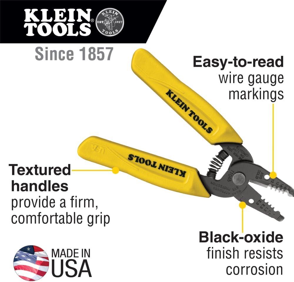 Complete electrical wiring tasks quicker by stripping 2 wires at a time with the Klein Tools 6-1/4-Inch Dual-Wire Stripper/Cutter. This tool is designed for use with 10-14 AWG solid wire. Its precision-ground stripping holes cleanly cut wire and aid in easy removal of insulation. For more than 160 years, Klein Tools has manufactured premium-quality, professional-grade hand tools that deliver the performance, durability and precision needed to get the job done right. Our family of engineers, workers and craftsman continue to put six generations of expertise into every tool we create by using only the highest quality materials, superior workmanship, and keeping manufacturing as close to home as we can. Klein isn't just the name of our company, it's also our family name. And since we're an American company that's family-owned and family-run, you know you can count on us to be here tomorrow. Klein Tools doesn't just make great products, we make great products that stand up to the demands of the professionals who use them every day … Since 1857.