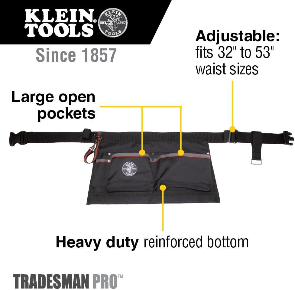 Klein Tools 21022 6-Pocket Tool Apron, Durable Duck Canvas with Riveted Seams, Adjustable 28-Inch to 46-Inch Length Work Belt, Removable Tape Measure Loop(6-Pocket)