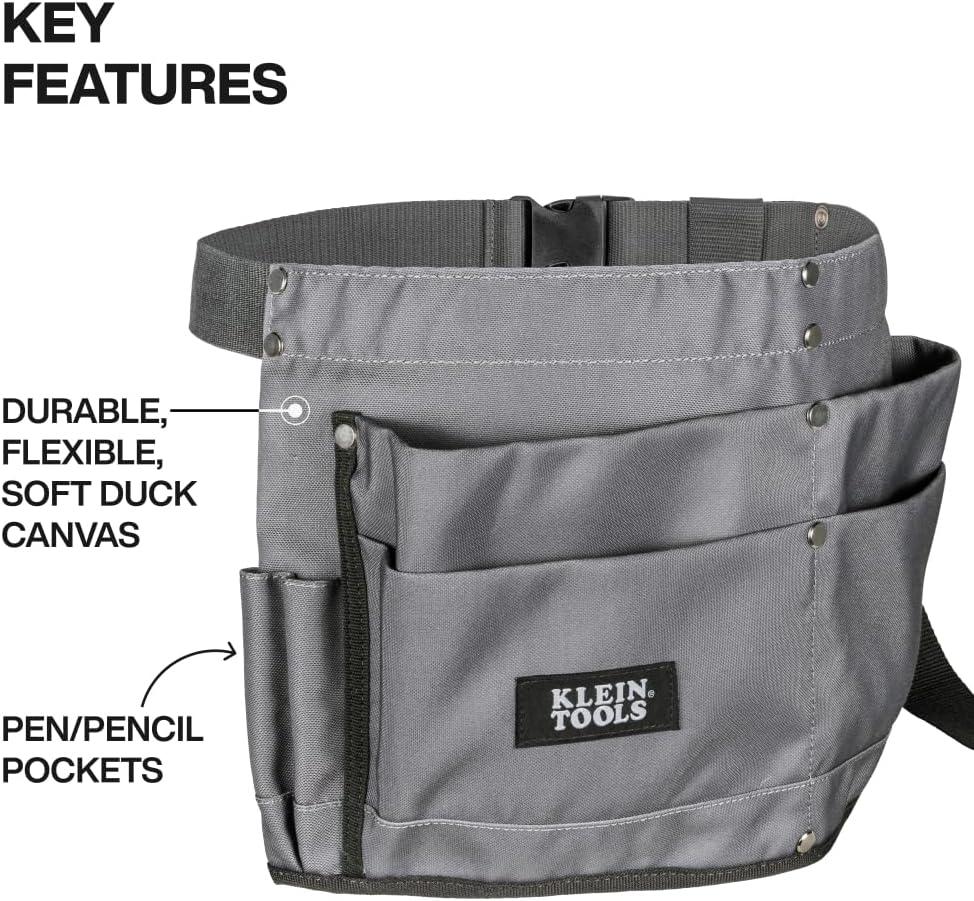 Klein Tools 21022 6-Pocket Tool Apron, Durable Duck Canvas with Riveted Seams, Adjustable 28-Inch to 46-Inch Length Work Belt, Removable Tape Measure Loop(8-Pocket)