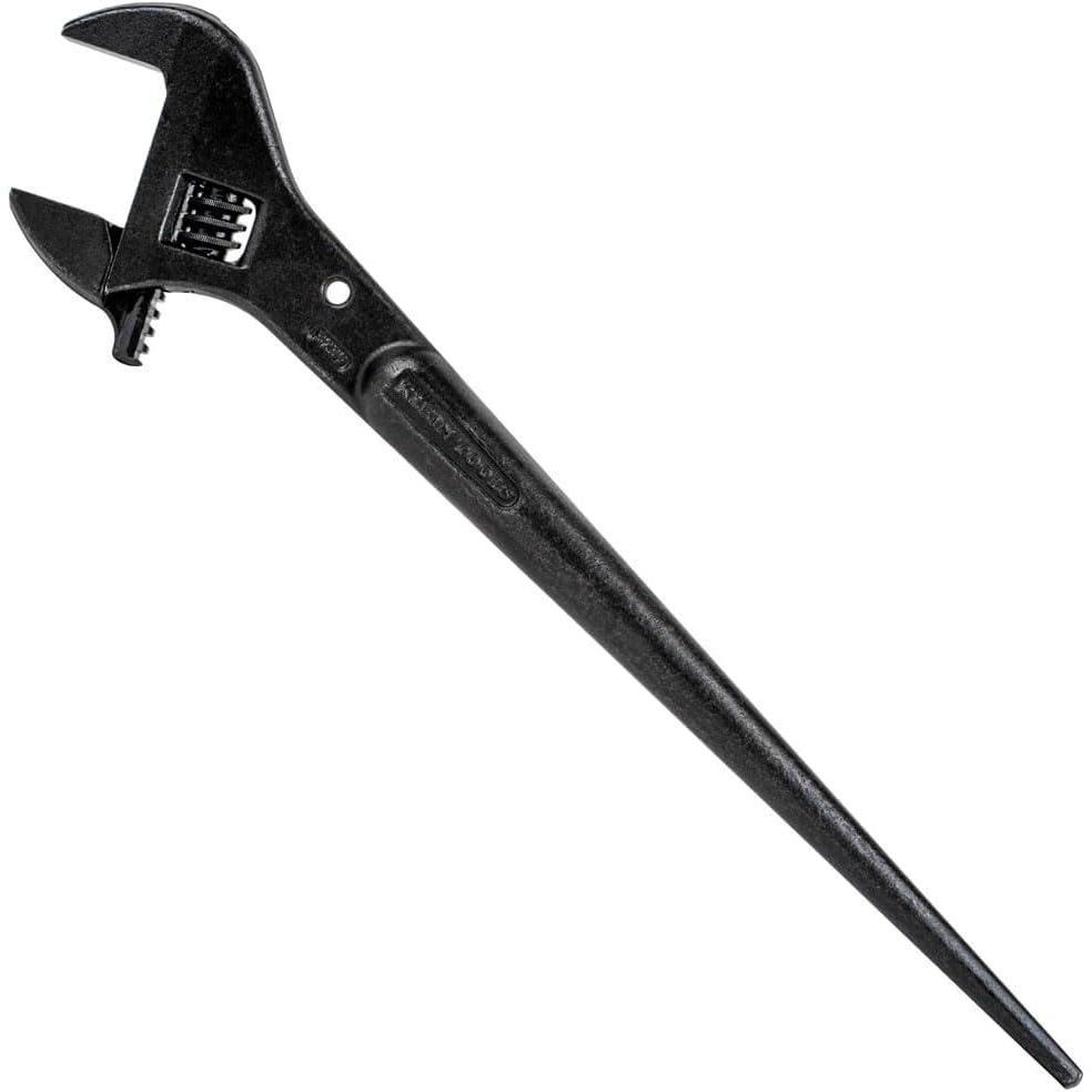 Since 1857, the company operated by Mathias Klein and his descendants to the fifth generation, has grown and developed along with the telecommunications and electrical industries where Klein pliers first found major usages. Today, Klein Tools, Inc. represents much more than Klein pliers. The company's product line has broadened to include virtually every major type of hand tool used in construction, electronics, mining, and general industry in addition to the electrical and telecommunications fields. Klein offers a lifetime warranty on material defects and workmanship for the normal life of the product. The Klein 3239 Construction Wrench eliminates the need for carrying several fixed-size wrenches. Available in high-capacity, the versatile wrench fits all nuts and bolts up to 1-1/2-Inches (38 mm). Heat-treated for long life, precision-machined jaws are individually chosen and assembled by hand for smooth operation. The rail is ground for precision fit, and the knurl turns smoothly for easy operation. Forged from select alloy steel with continuous-taper handle for aligning bolt and/or rivet holes, the wrench is chrome-plated for rust resistance and has an industrial black finish for corrosion resistance. The Klein 3239 Construction Wrench with adjustable head is sold one item per package.