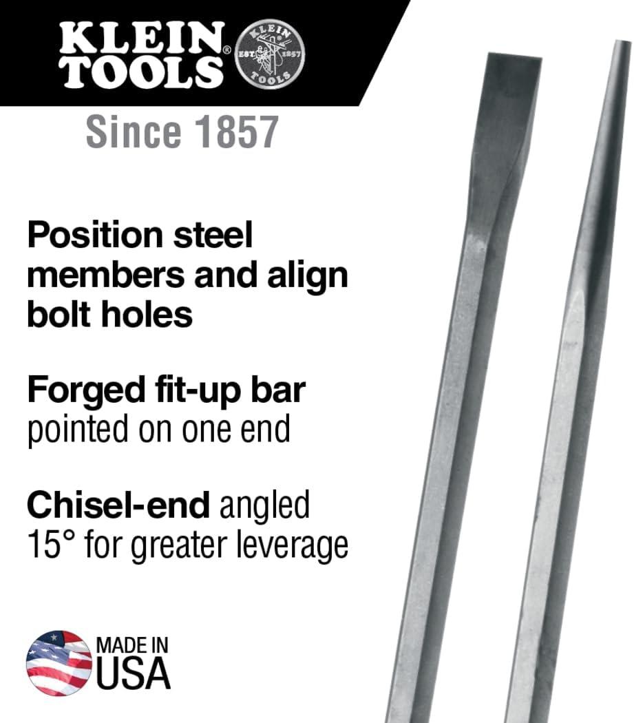 Since 1857, the company operated by Mathias Klein and his descendants to the fifth generation, has grown and developed along with the telecommunications and electrical industries where Klein pliers first found major usages. Today, Klein Tools, Inc. represents much more than Klein pliers. The company's product line has broadened to include virtually every major type of hand tool used in construction, electronics, mining, and general industry in addition to the electrical and telecommunications fields. Klein offers a lifetime warranty on material defects and workmanship for the normal life of the product. The Klein 3243 36-Inch Hexagonal Connecting Bar is a great addition to your tool collection. With a straight chisel on one end, the 7/8-Inch diameter hex bar provides extra leverage when positioning steel members and aligning bolt holes. The forged fit-up bar is pointed on the other end. The Klein 3243 36-Inch Hexagonal Connecting Bar is sold one item per package.