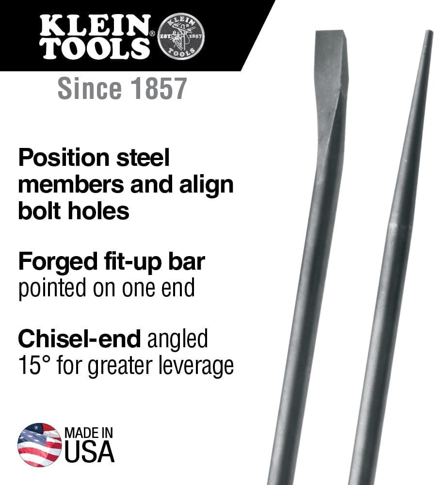 Klein Tools Round Connecting Bars are designed so they provide extra-leverage when positioning steel members and aligning bolt holes. Round bars are made of hardened steel for durability and long life. The chisel-end is at a 15-Degree angle to give greater leverage. For more than 160 years, Klein Tools has manufactured premium-quality, professional-grade hand tools that deliver the performance, durability and precision needed to get the job done right. Our family of engineers, workers and craftsman continue to put six generations of expertise into every tool we create by using only the highest quality materials, superior workmanship, and keeping manufacturing as close to home as we can. Klein isn't just the name of our company, it's also our family name. And since we're an American company that's family-owned and family-run, you know you can count on us to be here tomorrow. Klein Tools doesn't just make great products, we make great products that stand up to the demands of the professionals who use them every day … Since 1857.