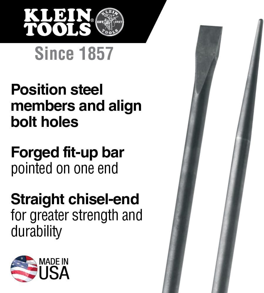 Since 1857, the company operated by Mathias Klein and his descendants to the fifth generation, has grown and developed along with the telecommunications and electrical industries where Klein pliers first found major usages. Today, Klein Tools, Inc. represents much more than Klein pliers. The company's product line has broadened to include virtually every major type of hand tool used in construction, electronics, mining, and general industry in addition to the electrical and telecommunications fields. Klein offers a lifetime warranty on material defects and workmanship for the normal life of the product. The Klein 3245 30-Inch Round Connecting Bar is a great addition to your tool collection. With a straight chisel on one end, the 3/4-Inch diameter hex bar provides extra leverage when positioning steel members and aligning bolt holes. The forged fit-up bar is pointed on the other end. The Klein 3245 30-Inch Round Connecting Bar is sold one item per package.