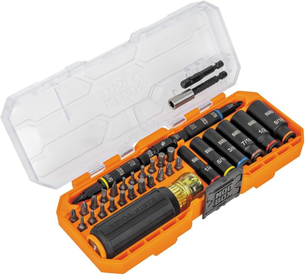 Klein Tools 32502HD KNECT Impact-Rated Screwdriver and Socket Set with MODbox Case, 41-Piece, 26 Bits, 6 Deep Well Sockets, Accessories, and Handle(41-Piece Set)