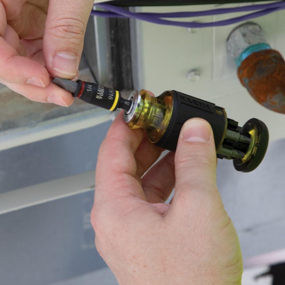 Each 3-in-1 Impact Flip Socket allows for quick switching between drive sizes. For use on an impact driver, these versatile sockets include three hex sizes: 5/16-inch, 1/4-Inch shallow (driver) and 1/4-Inch deep (bit holder). Rare-Earth magnet holds bits and hex head fasteners. Set includes 3-Inch and 5-Inch (8 and 13 cm) length blades that will, also, fit Klein Tools screwdriver handles (Cat. Nos. 32303, 32304, or 32308). For more than 160 years, Klein Tools has manufactured premium-quality, professional-grade hand tools that deliver the performance, durability and precision needed to get the job done right. Our family of engineers, workers and craftsman continue to put six generations of expertise into every tool we create by using only the highest quality materials, superior workmanship, and keeping manufacturing as close to home as we can. Klein isn't just the name of our company, it's also our family name. And since we're an American company that's family-owned and family-run, you know you can count on us to be here tomorrow. Klein Tools doesn't just make great products, we make great products that stand up to the demands of the professionals who use them every day … Since 1857.