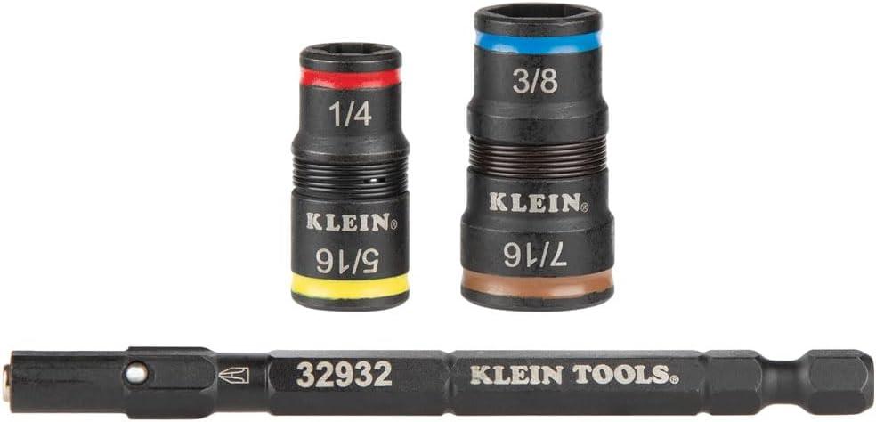 imageKlein Tools 32766 Impact Driver 3in1 SAE Impact Socket and Bit Holder Flip Socket with 14Inch and 516Inch Hex Drivers 3Inch Length