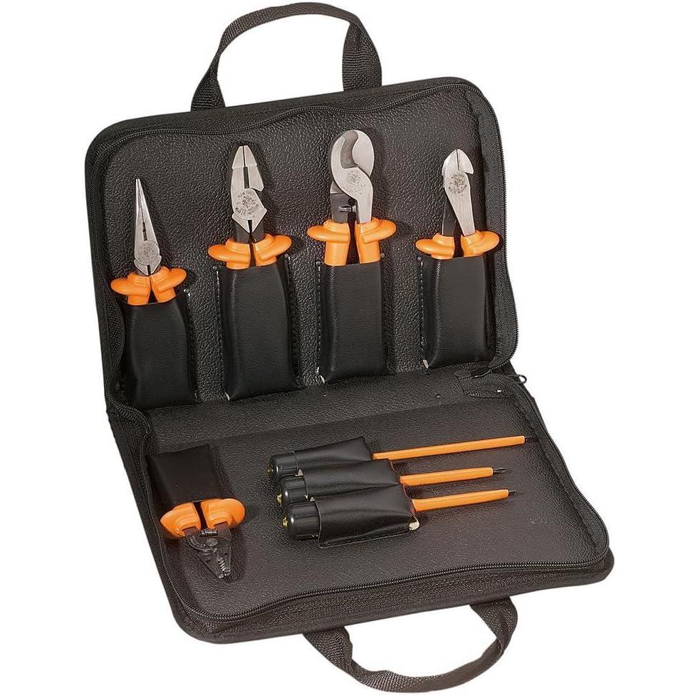 Since 1857, the company operated by Mathias Klein and his descendants to the fifth generation, has grown and developed along with the telecommunications and electrical industries where Klein pliers first found major usages. Today, Klein Tools, Inc. represents much more than Klein pliers. The company's product line has broadened to include virtually every major type of hand tool used in construction, electronics, mining and general industry in addition to the electrical and telecommunications fields. Some projects are more complex than others and require a variety of tools to be used. For this reason, Klein has tool kits to assist professionals with these demanding projects. this is a 1000-Volt insulated 22 piece tool kit containing everything needed for a high coltage project, including one D502-10-INS pump pliers, 11045-INS wire stripper/cutter, 1005-INS crimping/cutting tool, 1570-3LR-INS cable/lineman skinning knife, 601-4-INS cabinet-round shank screwdriver (3/16-by-8-Inch), 601-6-INS round shank screwdriver (3/16-by-4-Inch), 601-8-INS round shank screwdriver (3/16-by-8-Inch), 602-4-INS heavy duty round shank screwdriver (1/4-by-4-Inch), 602-6-INS heavy duty round shank screwdriver (5/16-by-6-Inch), 602-10-INS heavy duty round shank screwdriver (3/8-by-10-Inch), 603-3-INS Philips-round shank screwdriver, 603-4-INS Phillips round shank screwdriver, 603-6-INS Phillips round shank screwdriver and 33537 custom case. All tools are insulated.