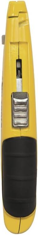 This practical tool combines the best features available in a utility knife, with rugged construction and user safety in mind. It has a bright yellow handle for easy visibility. When the blade is extended and pressure is applied to a hard surface, then removed from the surface when cut is complete, the blade retracts automatically and fully into the housing for user safety. Lanyard hole keeps the knife safely tethered to protect from loss of knife or injury from dropped knife.