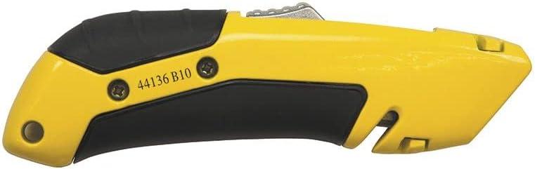 This practical tool combines the best features available in a utility knife, with rugged construction and user safety in mind. It has a bright yellow handle for easy visibility. When the blade is extended and pressure is applied to a hard surface, then removed from the surface when cut is complete, the blade retracts automatically and fully into the housing for user safety. Lanyard hole keeps the knife safely tethered to protect from loss of knife or injury from dropped knife.