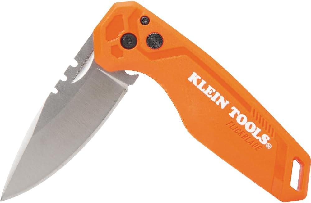 Klein Tools FLICKBLADE Button Lock Pocket Knife is engineered for comfortable use with a lightweight everyday carry design. It's stainless steel drop point blade is precisely ground to have a sharp edge with long term edge retention. It features a low profile pocket clip for easy carry and storage. It's intuitive button lock design allows one handed quick flick open and close action. For more than 160 years, Klein Tools has manufactured premium-quality, professional-grade hand tools that deliver the performance, durability and precision needed to get the job done right. Our family of engineers, workers and craftsman continue to put six generations of expertise into every tool we create by using only the highest quality materials, superior workmanship, and keeping manufacturing as close to home as we can. Klein isn't just the name of our company, it's also our family name. And since we're an American company that's family-owned and family-run, you know you can count on us to be here tomorrow. Klein Tools doesn't just make great products, we make great products that stand up to the demands of the professionals who use them every day … Since 1857.
