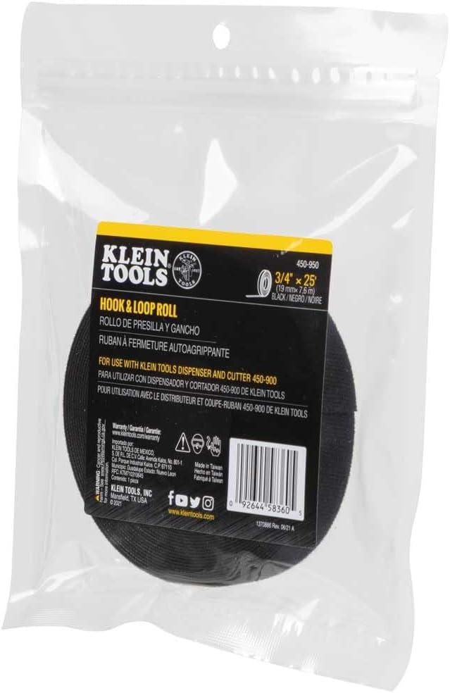 Klein Tools 450-950 Cable Management, Replacement Tape Roll for Klein's Hook and Loop Dispenser, 25-Foot x 3/4-Inch, Black(25-Foot Black)