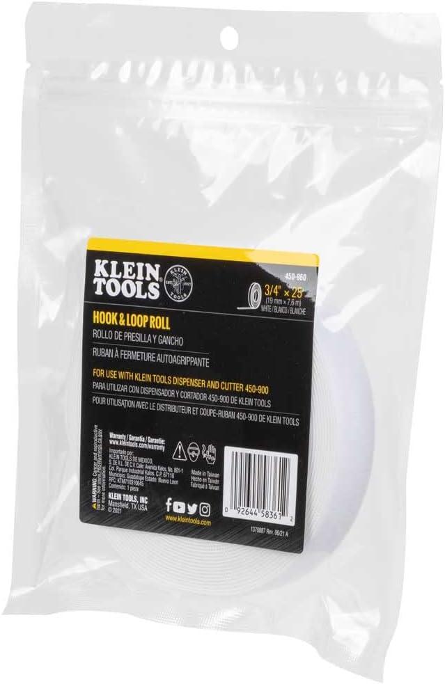 Klein Tools 450-950 Cable Management, Replacement Tape Roll for Klein's Hook and Loop Dispenser, 25-Foot x 3/4-Inch, Black(25-Foot White)
