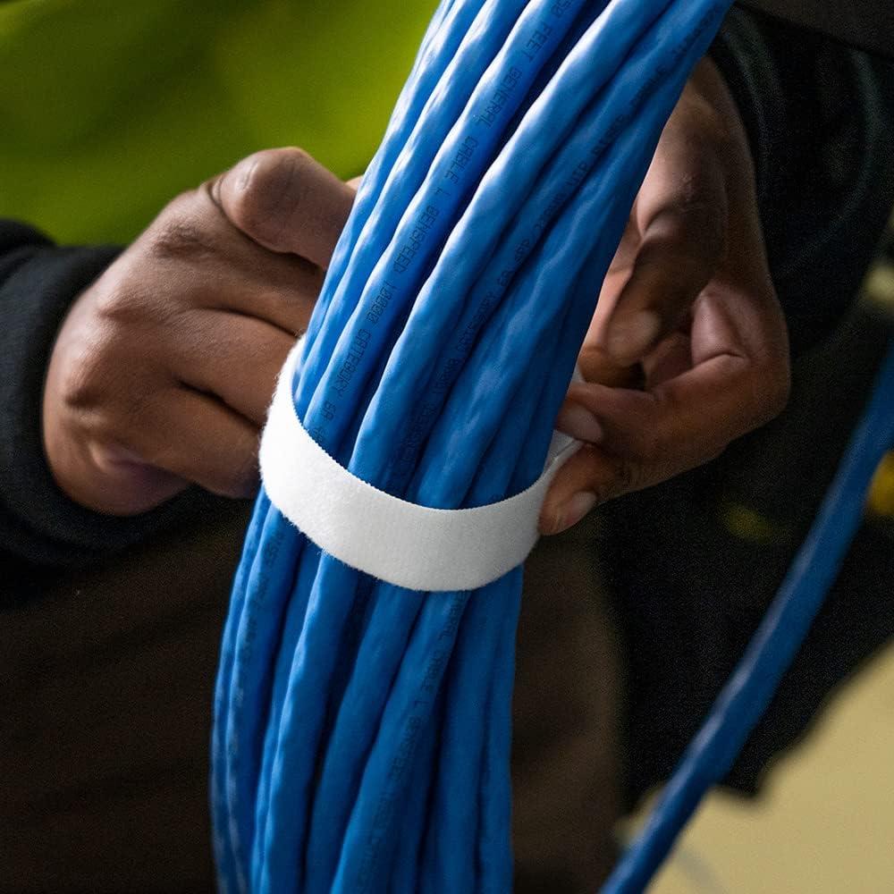 25-FOOT OF HOOK AND LOOP TAPE may be cut to desired length to make cable ties for organizing and managing cable bundles of different sizes