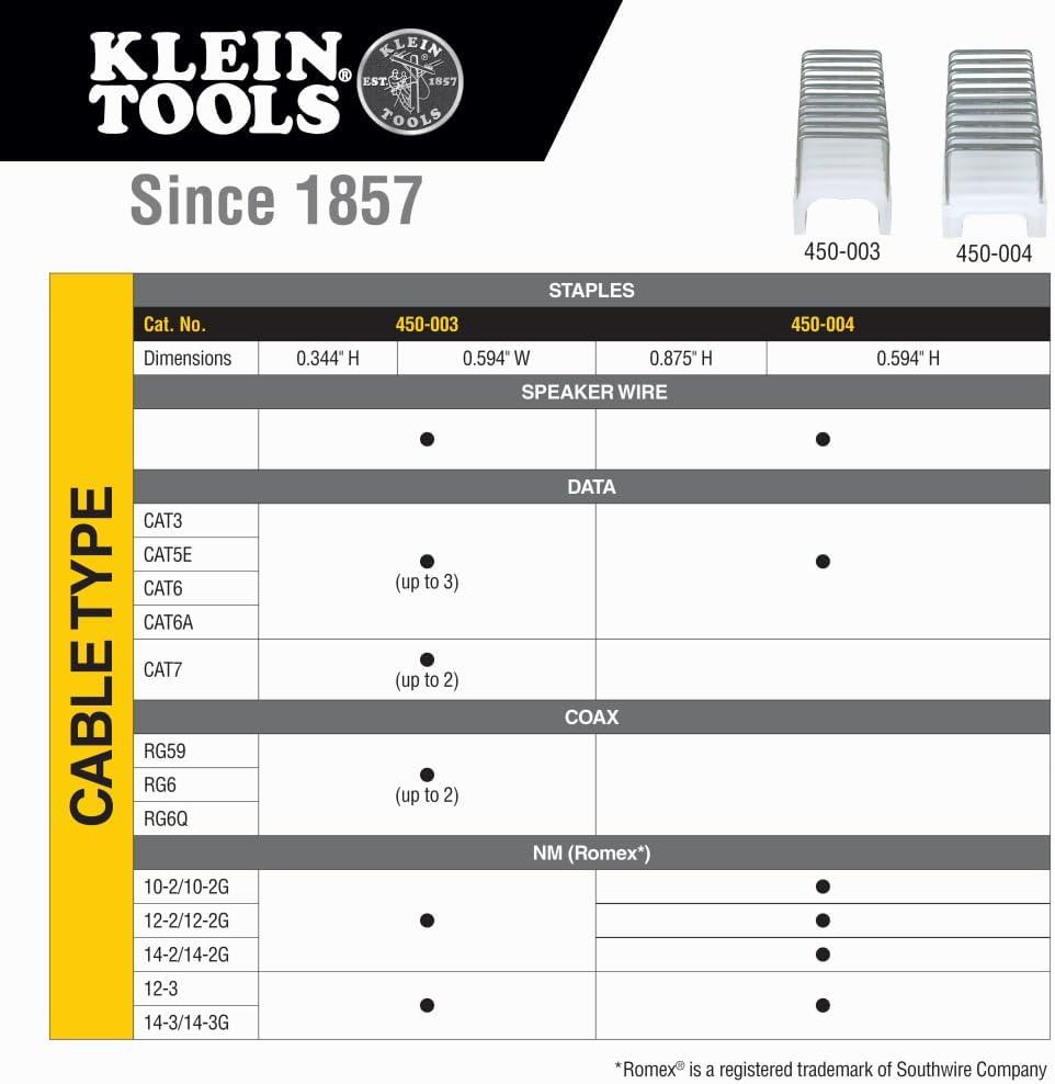 WORKS EXCLUSIVELY WITH KLEIN TOOLS INSULATED STAPLES: Compatible only with Cat. Nos. 450-003, 450-004