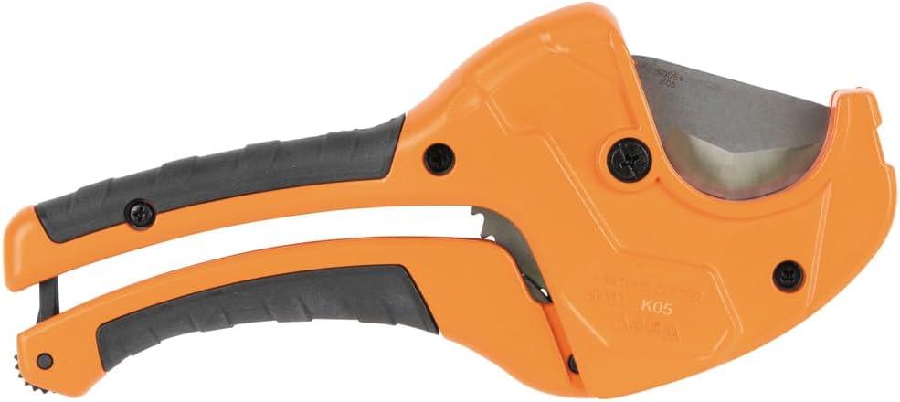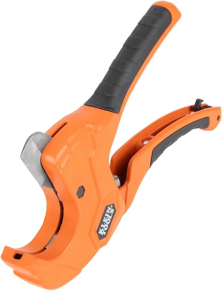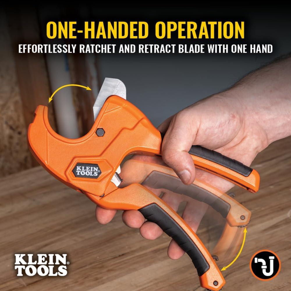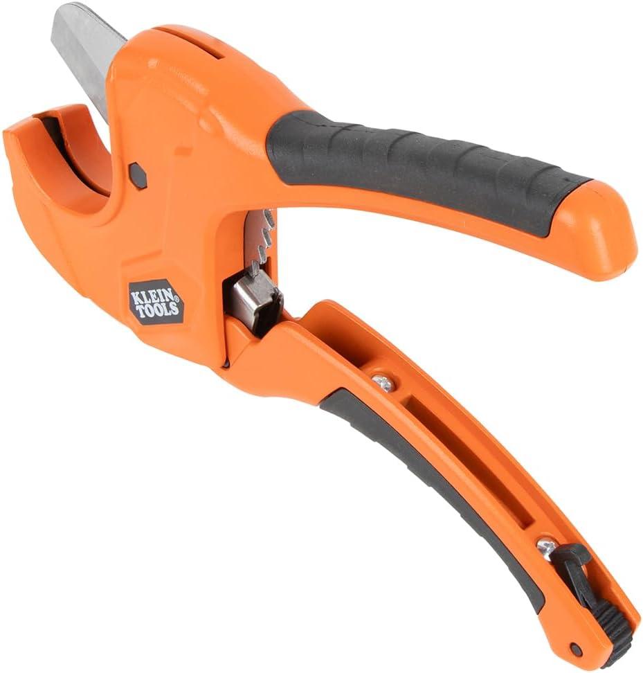 The Klein Tools Ratcheting PVC Pipe Cutter has a cutting capacity of up to 1-1/4-Inch (31 mm) I.D. and is designed to cut schedule 40/80 PVC, CPVC, and PEX pipes. The lightweight, soft-molded handles ensure comfortable grip and offer increased leverage during use. Pulling the handles apart retracts the blade allowing for easy one-handed operation. For more than 160 years, Klein Tools has manufactured premium-quality, professional-grade hand tools that deliver the performance, durability and precision needed to get the job done right. Our family of engineers, workers and craftsman continue to put six generations of expertise into every tool we create by using only the highest quality materials, superior workmanship, and keeping manufacturing as close to home as we can. Klein isn't just the name of our company, it's also our family name. And since we're an American company that's family-owned and family-run, you know you can count on us to be here tomorrow. Klein Tools doesn't just make great products, we make great products that stand up to the demands of the professionals who use them every day … Since 1857.