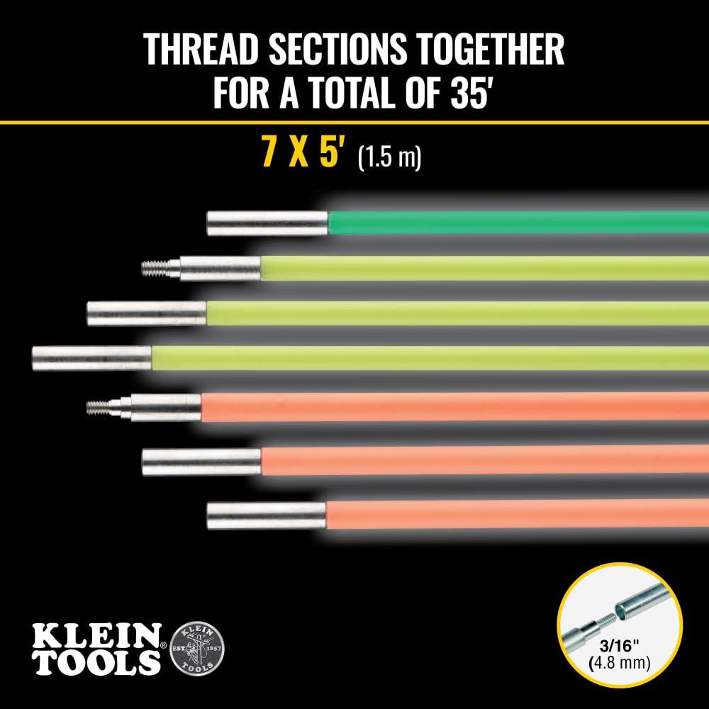 imageKlein Tools 50254 MultiFlex Glow Fish Rod with Splinter Guard Coating 5 Fish Rods with Bullet Nose Magnet Chain Attachments 25Foot35Foot
