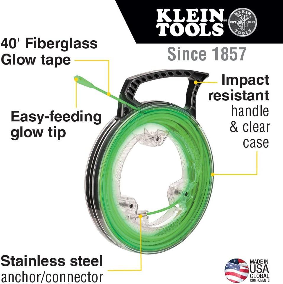Klein Tools 50550 Glow-in-the-Dark Fish Tape, Made in USA, Fiberglass with Nylon Tip and Stainless-Steel Connector. Ideal for Fish Rod, 20-Foot(40-Foot Glow Fishtape)