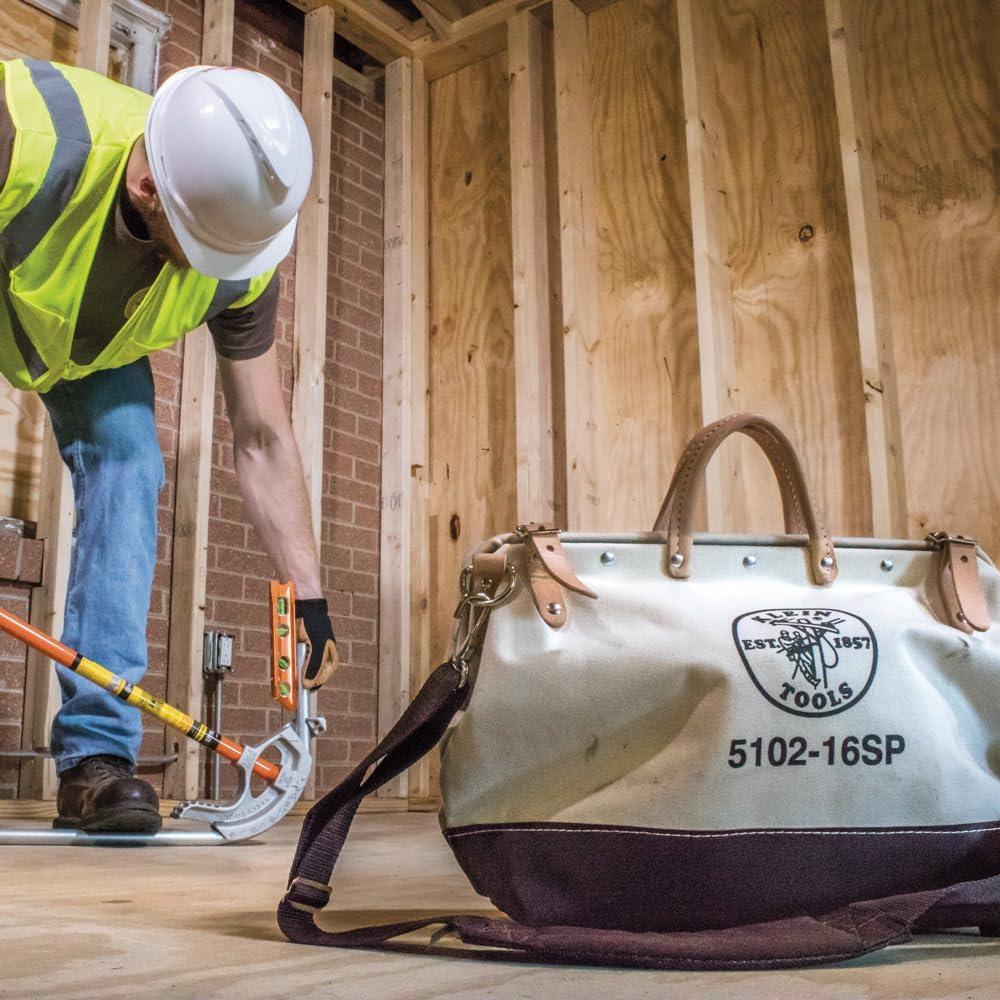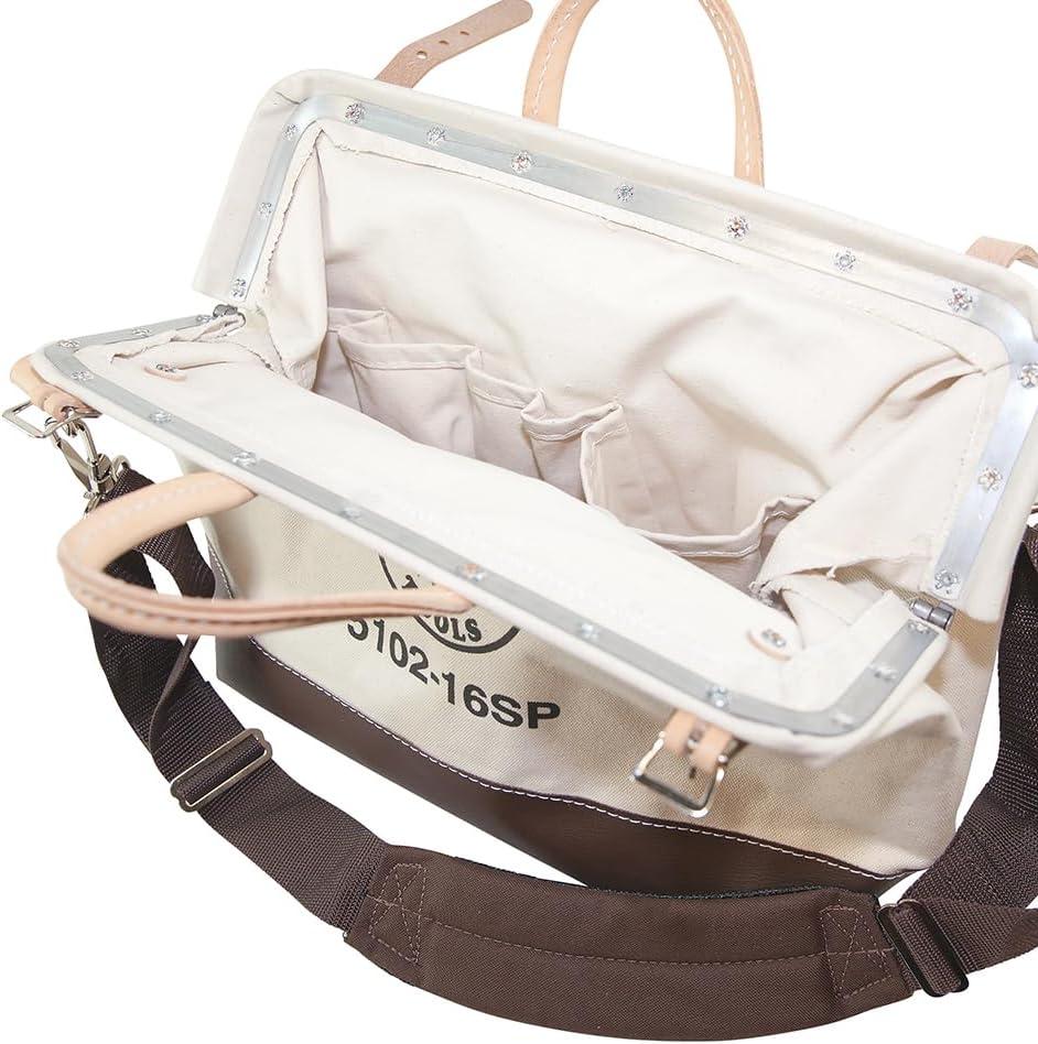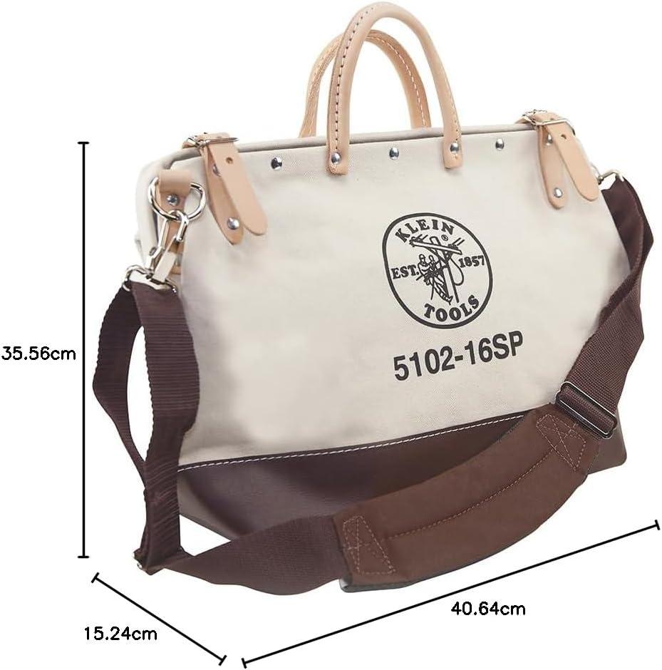 Klein Tools 5102-16SP Deluxe Canvas Tool Bag Made of Natural Canvas with 13 Interior Pockets and Detachable Shoulder Strap, 16-Inch(16-Inch)