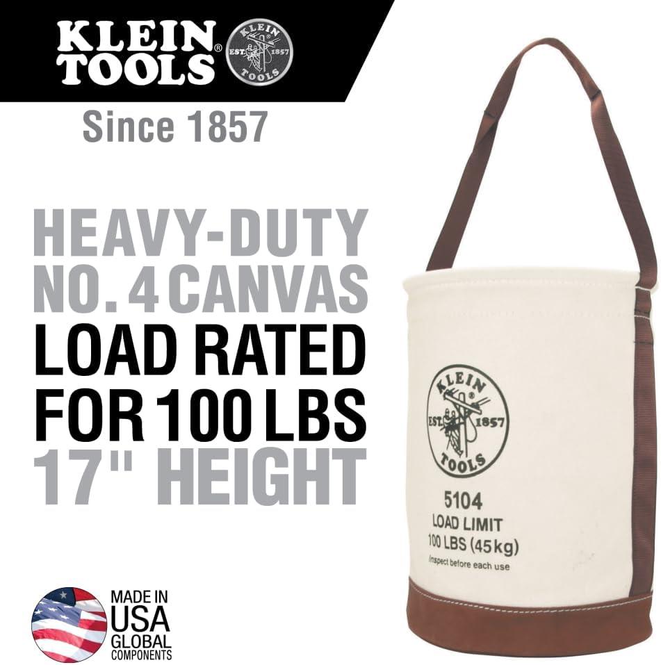 Keep your tools safe and protected with Klein's Heavy Duty Top Closing Tool Buckets. The top zips closed to prevent falling objects. Load rated for up 150-Pound (68 kg), this roomy bucket holds all the necessary tools required to get the job done. Heavy-duty No. 1 canvas body with leather reinforced bottom withstands the harshest job sites. For more than 160 years, Klein Tools has manufactured premium-quality, professional-grade hand tools that deliver the performance, durability and precision needed to get the job done right. Our family of engineers, workers and craftsman continue to put six generations of expertise into every tool we create by using only the highest quality materials, superior workmanship, and keeping manufacturing as close to home as we can. Klein isn't just the name of our company, it's also our family name. And since we're an American company that's family-owned and family-run, you know you can count on us to be here tomorrow. Klein Tools doesn't just make great products, we make great products that stand up to the demands of the professionals who use them every day … Since 1857.