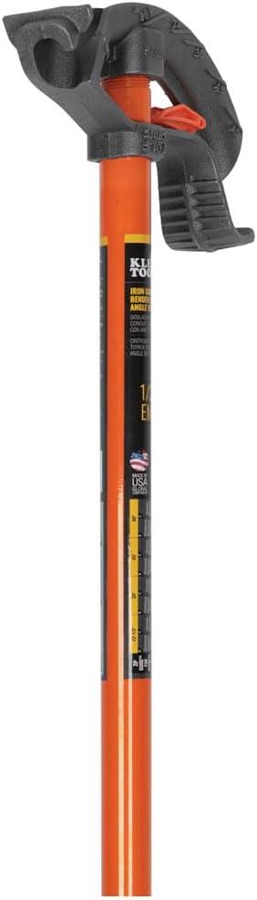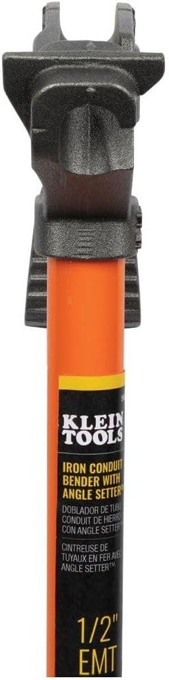 3/4-Inch assembled Iron Bender includes Klein's unique Angle Setter technology for time-saving, repeated accurate bends; Patent pending Angle Setter for use on 10-, 22.5-, 30-, and 45-Degree bends (adjusted for conduit spring back)