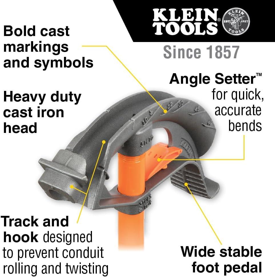 Klein Tools 51604 Iron Conduit Bender Full Assembly, 3/4-Inch EMT and 1/2-Inch Rigid, Wide Foot Pedal, Benchmark Symbols and Angle Setter