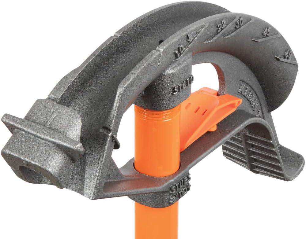 Klein Tools' conduit benders with Patent Pending Angle Setter technology allow for quick, accurate repeated bends. The wide foot pedal provides excellent stability and features angled grooves for extra traction. With easily visible bold cast-in benchmark symbols, degree scales and multiplier scales help save time on the job. For more than 160 years, Klein Tools has manufactured premium-quality, professional-grade hand tools that deliver the performance, durability and precision needed to get the job done right. Our family of engineers, workers and craftsman continue to put six generations of expertise into every tool we create by using only the highest quality materials, superior workmanship, and keeping manufacturing as close to home as we can. Klein isn't just the name of our company, it's also our family name. And since we're an American company that's family-owned and family-run, you know you can count on us to be here tomorrow. Klein Tools doesn't just make great products, we make great products that stand up to the demands of the professionals who use them every day … Since 1857.