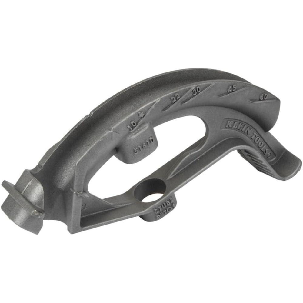 Klein Tools' Conduit Bender Head is designed to handle thin wall EMT up to 1-Inch and rigid IMC up to 3/4-Inch thick. Made from Iron with Klein's advanced casting process for the ultimate in core strength and durability. The wide foot pedal provides excellent stability and features angled grooves for extra traction. Easily visible bold cast-in benchmark symbols, degree scales and multiplier scales help save time on the job. This head works with Klein's patented Angle Setters (Cat. No. 51613) for quick, repeated bends and the Klein Handle (Cat. No. 51428), which are both sold separately.