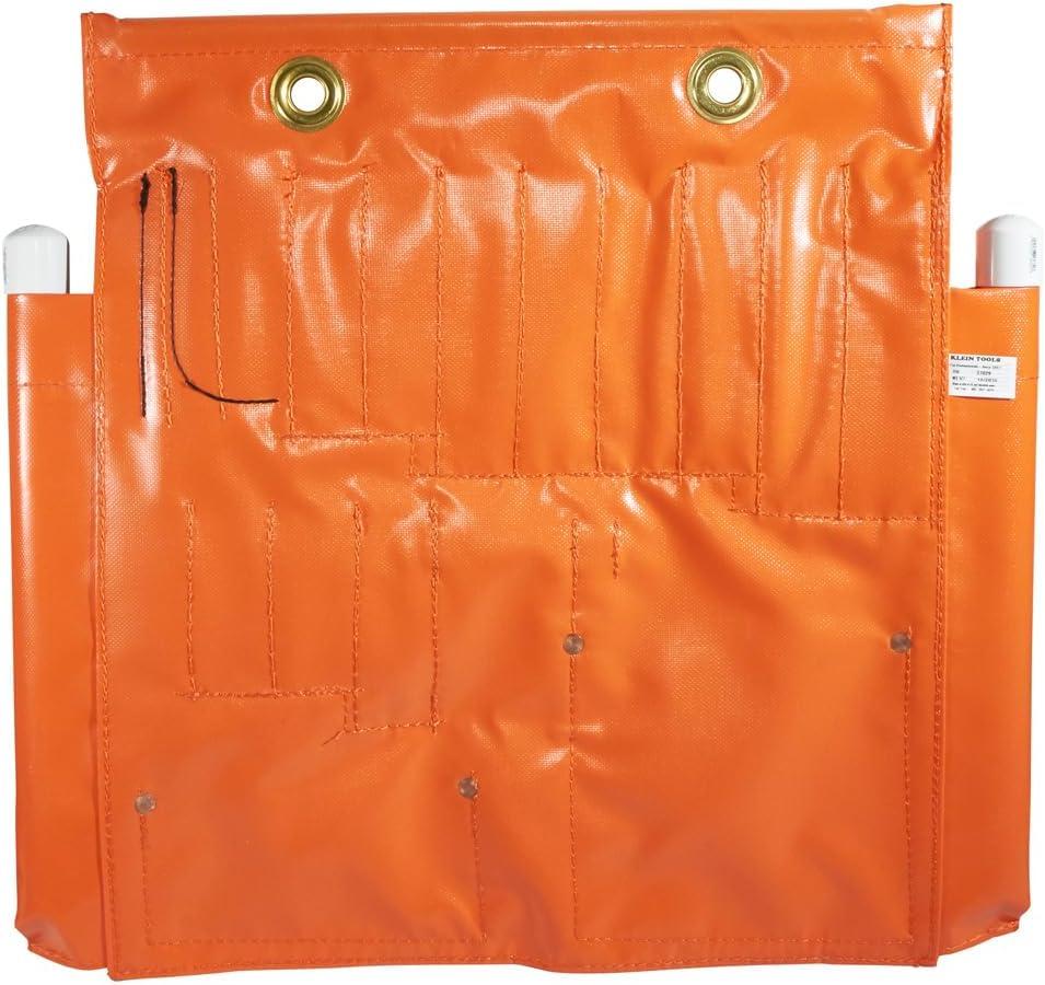 Klein Tools 51828 Tool Apron, Made in USA, 18-Inch Aerial Apron with 8 Pockets and Tool Pouches, Loops and Hooks in Hi-Viz Orange(With Magnet)