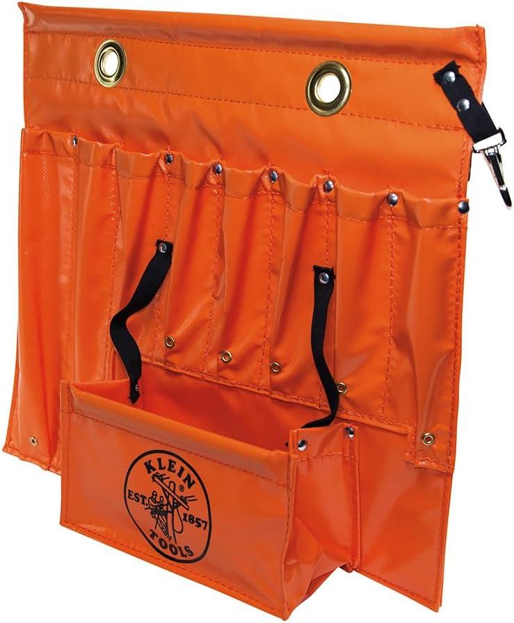 With this aerial apron, you can stay focused on finishing the job, not finding your tools. High-viz orange for easy visibility. This versatile apron features multiple pockets, pouches, holders, loops and hooks to organize your tools. Durably constructed for long life. For more than 160 years, Klein Tools has manufactured premium-quality, professional-grade hand tools that deliver the performance, durability and precision needed to get the job done right. Our family of engineers, workers and craftsman continue to put six generations of expertise into every tool we create by using only the highest quality materials, superior workmanship, and keeping manufacturing as close to home as we can. Klein isn't just the name of our company, it's also our family name. And since we're an American company that's family-owned and family-run, you know you can count on us to be here tomorrow. Klein Tools doesn't just make great products, we make great products that stand up to the demands of the professionals who use them every day … Since 1857.