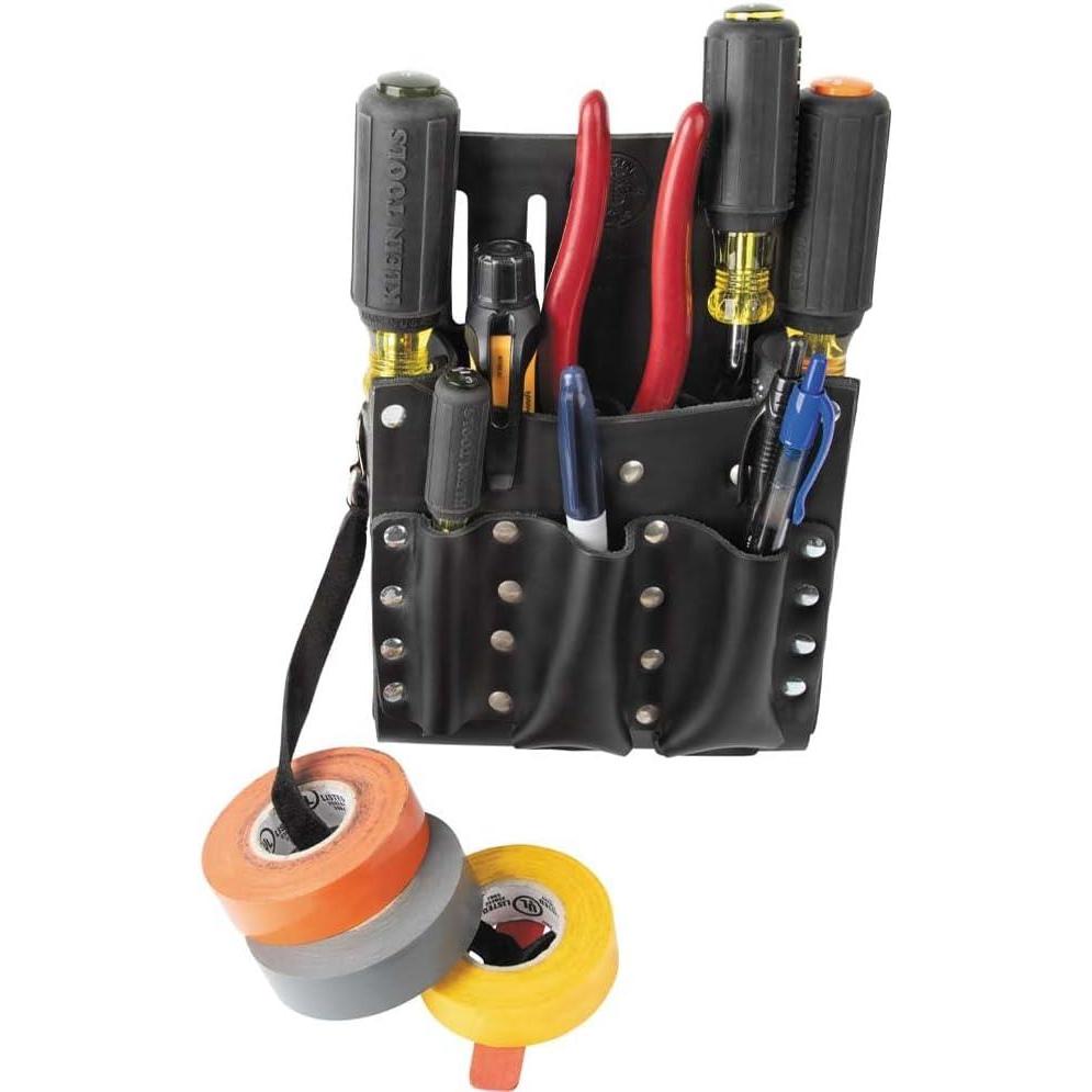 The versatile 10-Pocket Tool Pouch is favored by many telephone installers. Made of leather, the pouch is stitched and riveted for extra durability. Lots of separate compartments help you organize your tools so you can easily find what you need. For more than 160 years, Klein Tools has manufactured premium-quality, professional-grade hand tools that deliver the performance, durability and precision needed to get the job done right. Our family of engineers, workers and craftsman continue to put six generations of expertise into every tool we create by using only the highest quality materials, superior workmanship, and keeping manufacturing as close to home as we can. Klein isn't just the name of our company, it's also our family name. And since we're an American company that's family-owned and family-run, you know you can count on us to be here tomorrow. Klein Tools doesn't just make great products, we make great products that stand up to the demands of the professionals who use them every day … Since 1857.