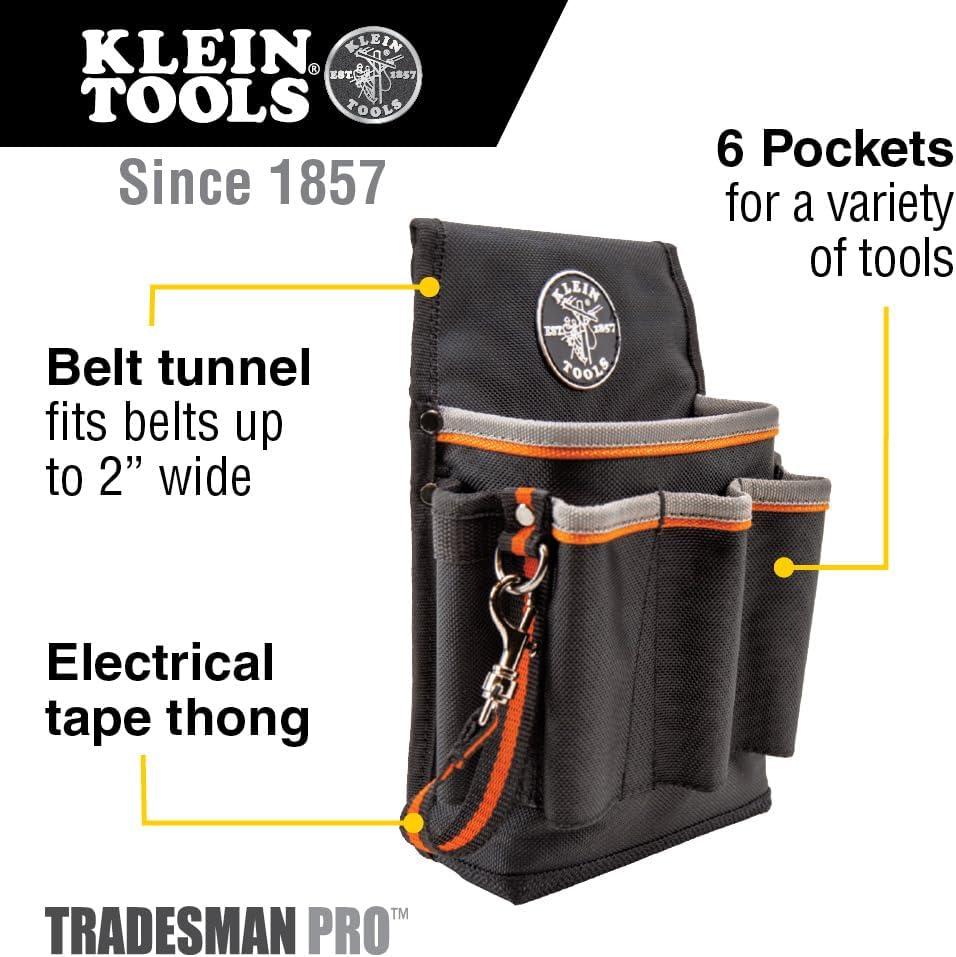 Klein Tools 5242 Tool Pouch, Tradesman Pro tool Pouch with Electrical Tape Thong, Reinforced Bottom, 9 Pockets(6-Pocket Pouch)