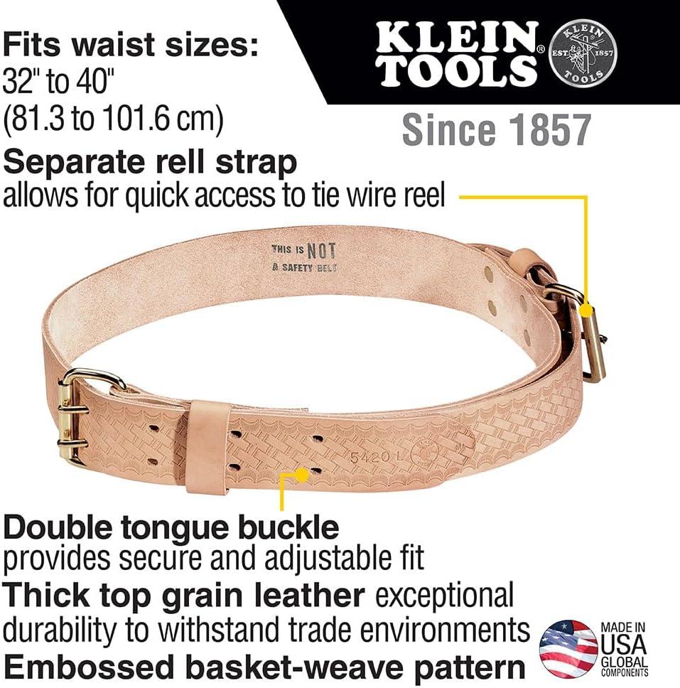 Klein Tools' Ironworker's Heavy-Duty Tie-Wire Belts are built for durability and convenience. It features a separate reel-strap with its own buckle. This allows you to quickly and conveniently remove your Klein tie-wire reel without removing your belt or tool pouch. It also has a strong, double-tongue buckle with keeper. For more than 160 years, Klein Tools has manufactured premium-quality, professional-grade hand tools that deliver the performance, durability and precision needed to get the job done right. Our family of engineers, workers and craftsman continue to put six generations of expertise into every tool we create by using only the highest quality materials, superior workmanship, and keeping manufacturing as close to home as we can. Klein isn't just the name of our company, it's also our family name. And since we're an American company that's family-owned and family-run, you know you can count on us to be here tomorrow. Klein Tools doesn't just make great products, we make great products that stand up to the demands of the professionals who use them every day … Since 1857.