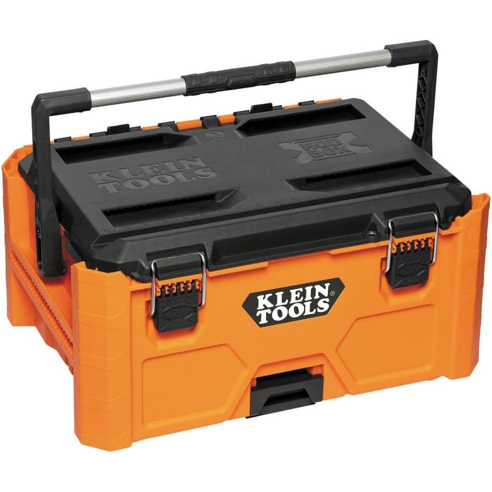 Klein Tools MODbox Medium stackable tool box features side rails that connect attachments for more storage options and easy access to commonly used items. Metal reinforced handle pivots for a comfortable top carry when not connected to other MODbox component parts. Tool box organizer is IP65 rated, 100-Pound capacity, and made with heavy duty impact resistant polymers. Comes with a removable Tool Caddy. Easily connects with other MODbox components to make a custom mobile workstation. For more than 160 years, Klein Tools has manufactured premium-quality, professional-grade hand tools that deliver the performance, durability and precision needed to get the job done right. Our family of engineers, workers and craftsman continue to put six generations of expertise into every tool we create by using only the highest quality materials, superior workmanship, and keeping manufacturing as close to home as we can. Klein isn't just the name of our company, it's also our family name. And since we're an American company that's family-owned and family-run, you know you can count on us to be here tomorrow. Klein Tools doesn't just make great products, we make great products that stand up to the demands of the professionals who use them every day … Since 1857.