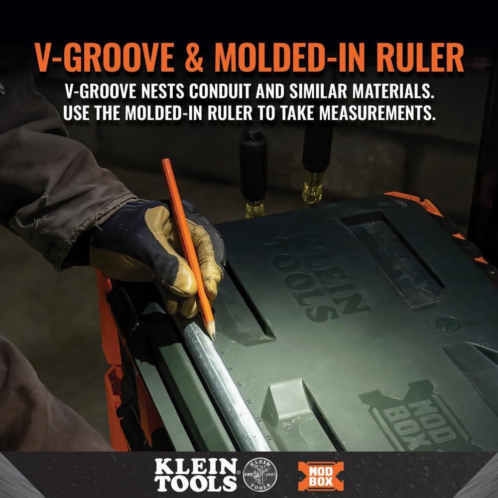 Klein Tools MODbox Small Toolbox features side rails that connect attachments for more storage options and easy access to commonly used items. Lid features v-groove for conduit and molded-in ruler. Small Toolbox with overmolded comfort handle is IP65 rated, 75-Pound (34 kg) capacity, and made with impact resistant polymers. Comes with a removable organizer bin. Easily connects with other MODbox components to make a custom mobile workstation. For more than 160 years, Klein Tools has manufactured premium-quality, professional-grade hand tools that deliver the performance, durability and precision needed to get the job done right. Our family of engineers, workers and craftsman continue to put six generations of expertise into every tool we create by using only the highest quality materials, superior workmanship, and keeping manufacturing as close to home as we can. Klein isn't just the name of our company, it's also our family name. And since we're an American company that's family-owned and family-run, you know you can count on us to be here tomorrow. Klein Tools doesn't just make great products, we make great products that stand up to the demands of the professionals who use them every day … Since 1857.