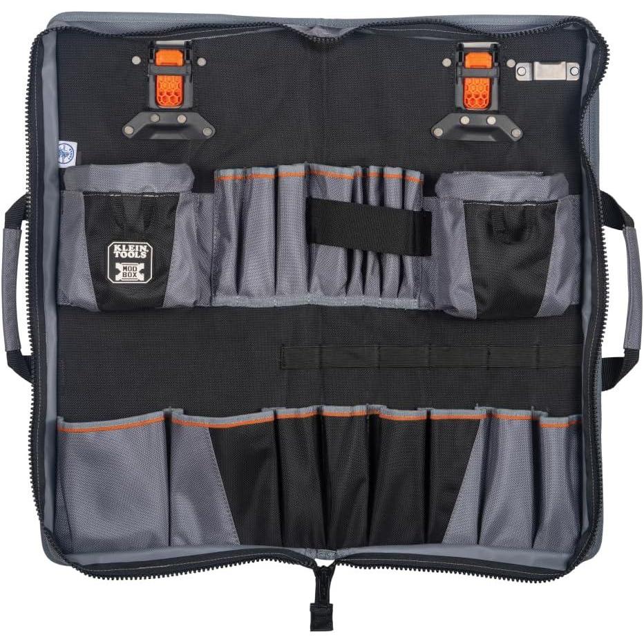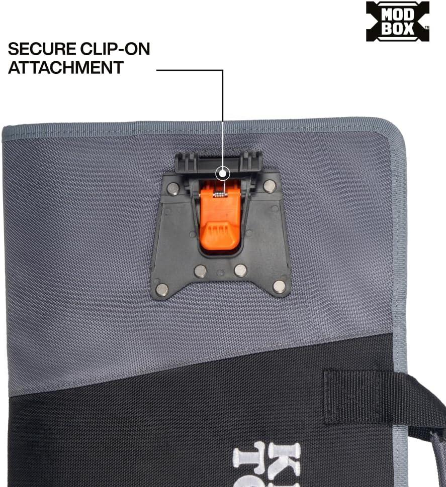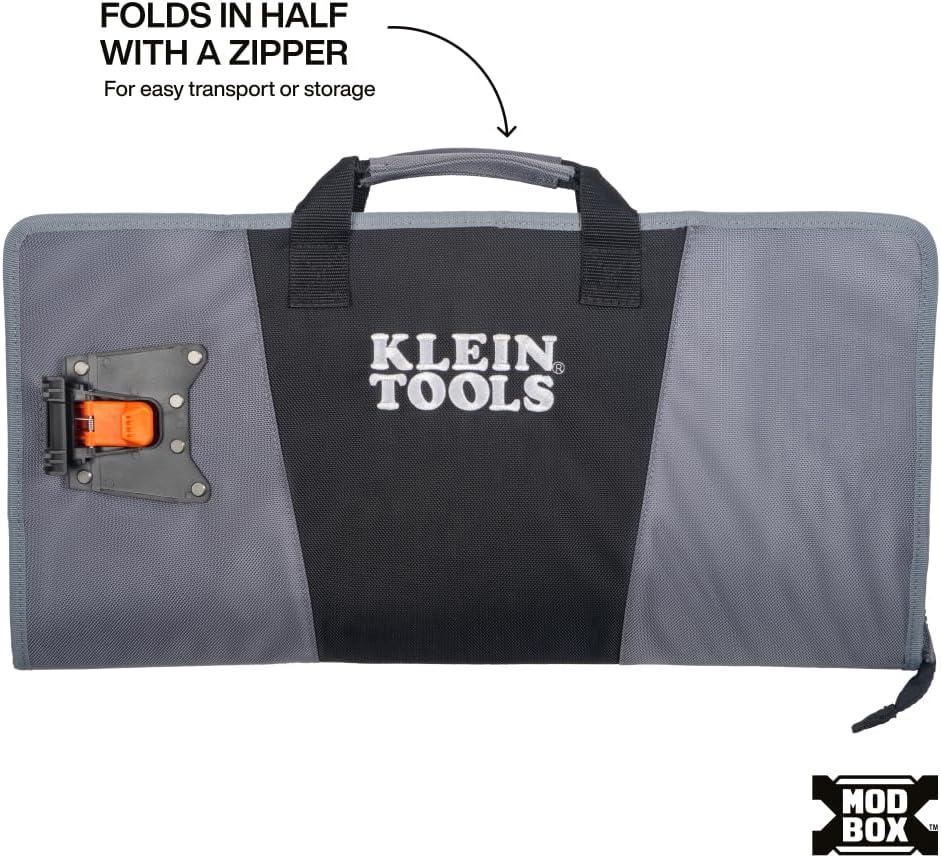 The MODbox Utility Cart Tool Apron solves jobsite organization challenges with multiple pockets, secure clasps, and a clip-on attachment. This tool storage organizer folds with a zipper for compact transport, prevents spilling of small parts, and keeps essential tools within reach. This professional tool organization system frees up space on the top of your utility cart to enhance workflow efficiency. For more than 160 years, Klein Tools has manufactured premium-quality, professional-grade hand tools that deliver the performance, durability and precision needed to get the job done right. Our family of engineers, workers and craftsman continue to put six generations of expertise into every tool we create by using only the highest quality materials, superior workmanship, and keeping manufacturing as close to home as we can. Klein isn't just the name of our company, it's also our family name. And since we're an American company that's family-owned and family-run, you know you can count on us to be here tomorrow. Klein Tools doesn't just make great products, we make great products that stand up to the demands of the professionals who use them every day … Since 1857.