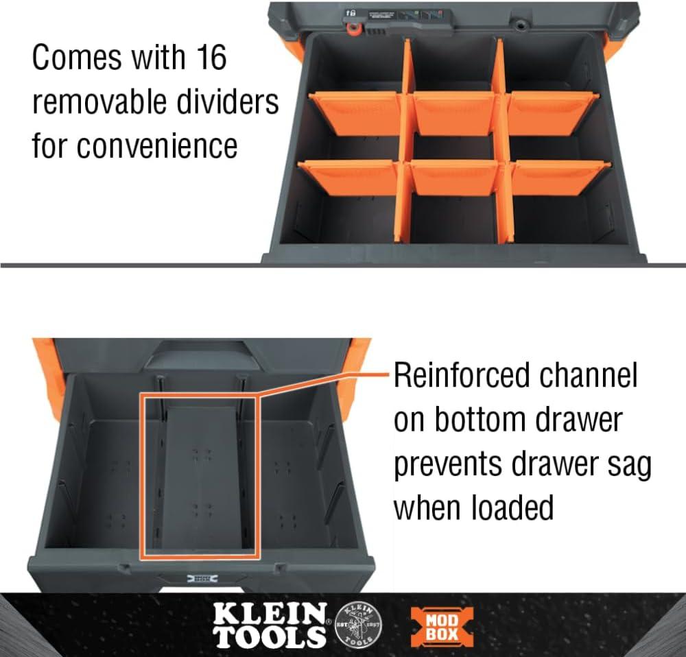 Klein Tools 54823MB MODbox 3-Drawer Tool Box Organizer, Heavy-Duty Tool Storage, Stackable Module, 50-Pound Capacity(2-Drawer)