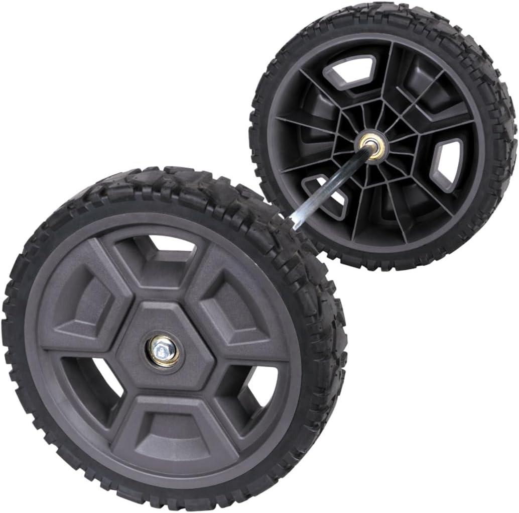 INCLUDES: Pair of 10-Inch Solid Rubber Wheels, Axle, and Bolts