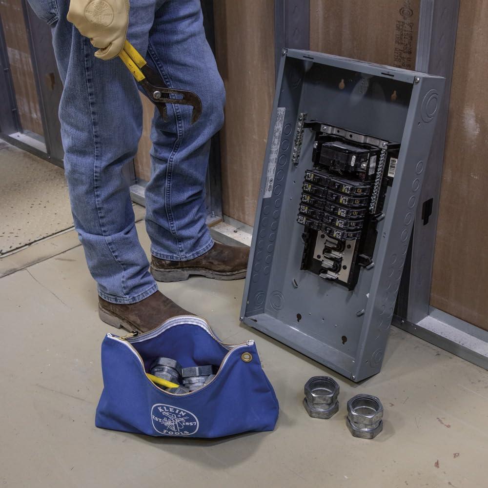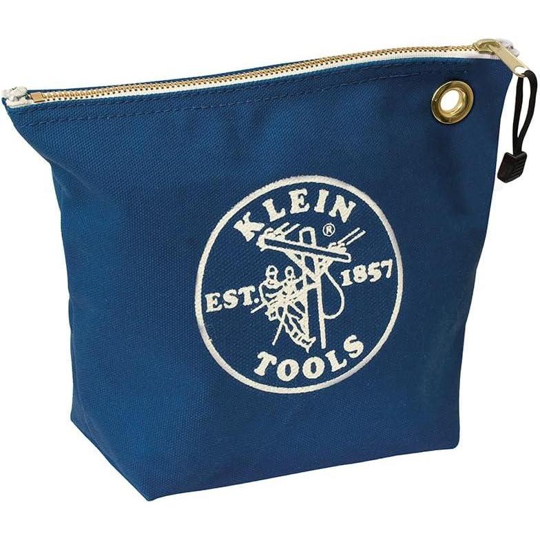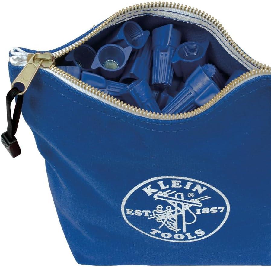 Klein Tools 5539NAT Zipper Bag, Canvas Tool Pouch is 10-Inch Consumables Bag for Storing Parts, Brass Grommet for Easy Hanging, Natural(Blue)