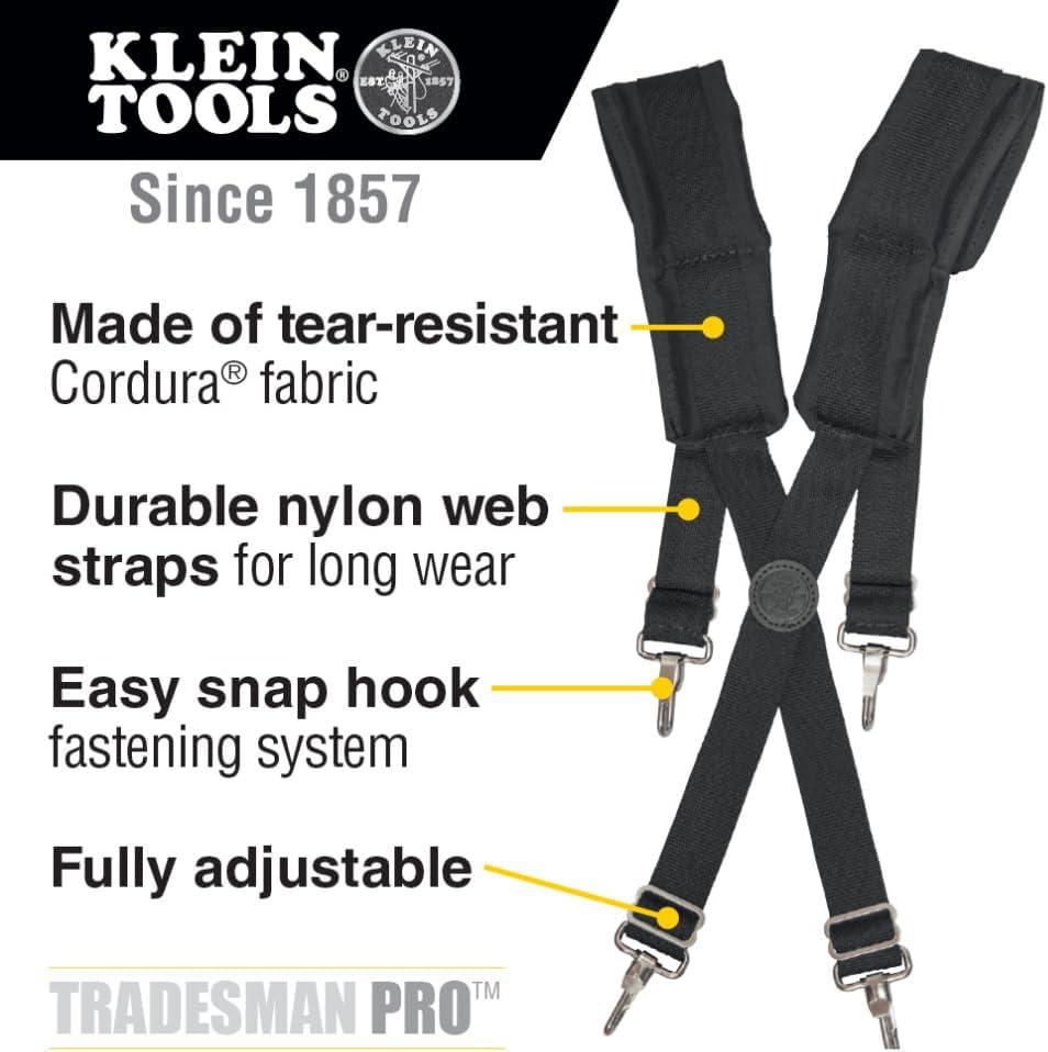Klein Tools 55400 Adjustable Suspenders, for 4-Point Attachment Belts, Rugged and Padded, Ideal Electricians or Carpenters Suspenders