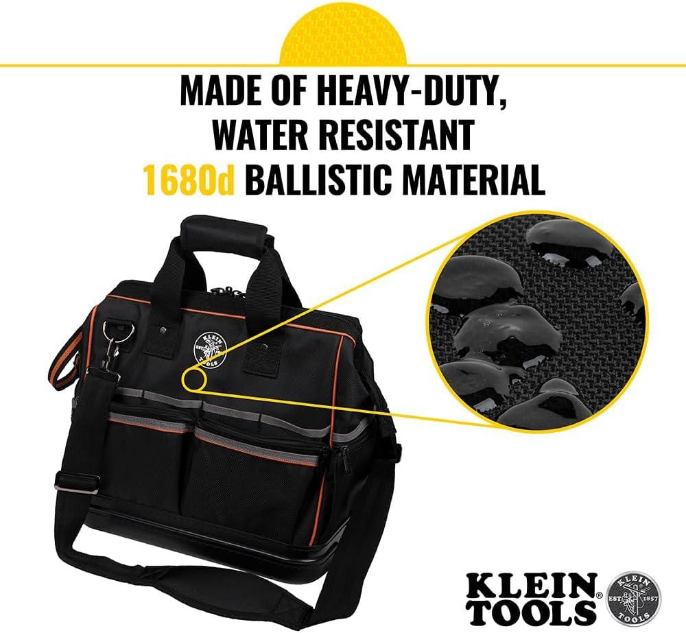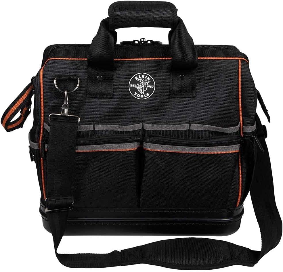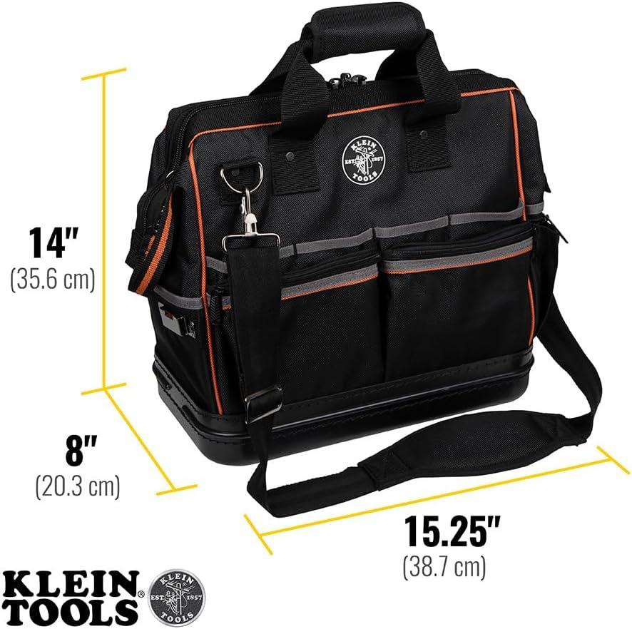 Klein Tools 55431 Tool Bag with Molded Bottom, Padded Shoulder Strap and Lighted Tool Storage with 31 Pockets(Tech Bag)