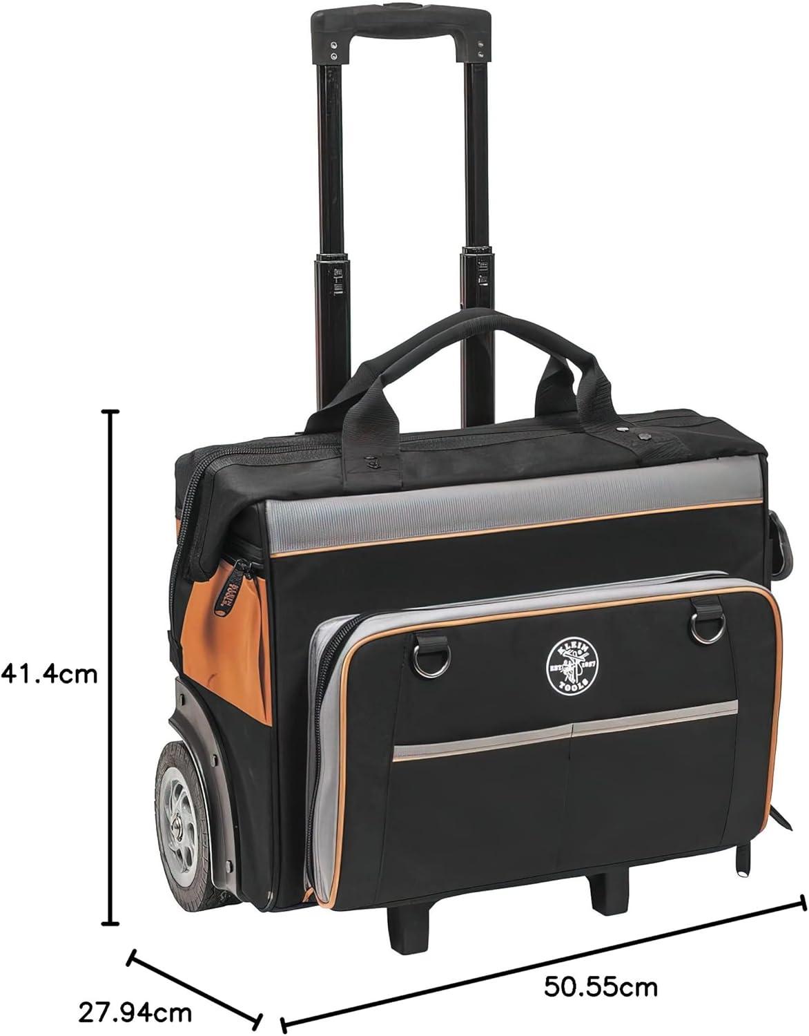With Klein Tools Tradesman Pro Organizer Rolling Tool Bag, cart your tools around the jobsite with ease. The rugged 6-Inch wheels can easily handle rough terrain. This tough bag can store up to 100-pound (45.4 kg) of tools and materials inside, and another 100-pound (45.4 kg) stacked on top. For more than 160 years, Klein Tools has manufactured premium-quality, professional-grade hand tools that deliver the performance, durability and precision needed to get the job done right. Our family of engineers, workers and craftsman continue to put six generations of expertise into every tool we create by using only the highest quality materials, superior workmanship, and keeping manufacturing as close to home as we can. Klein isn't just the name of our company, it's also our family name. And since we're an American company that's family-owned and family-run, you know you can count on us to be here tomorrow. Klein Tools doesn't just make great products, we make great products that stand up to the demands of the professionals who use them every day … Since 1857.