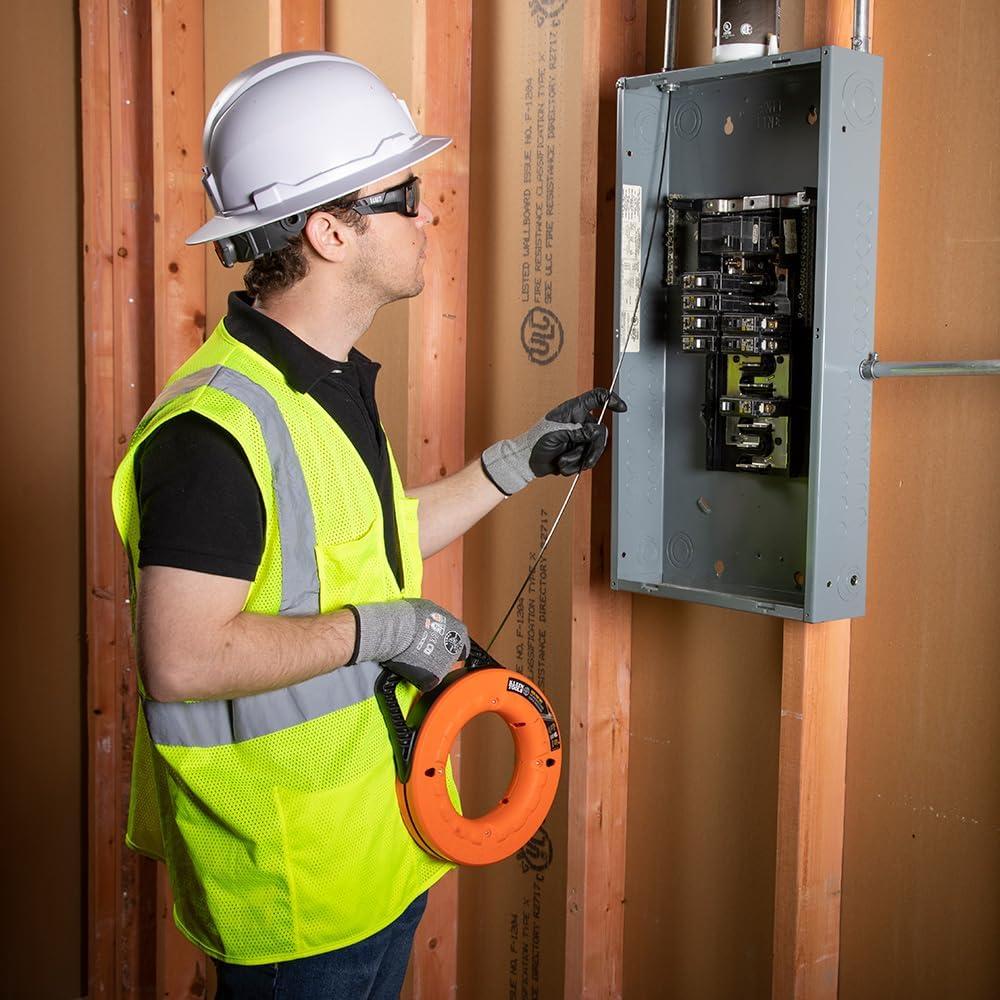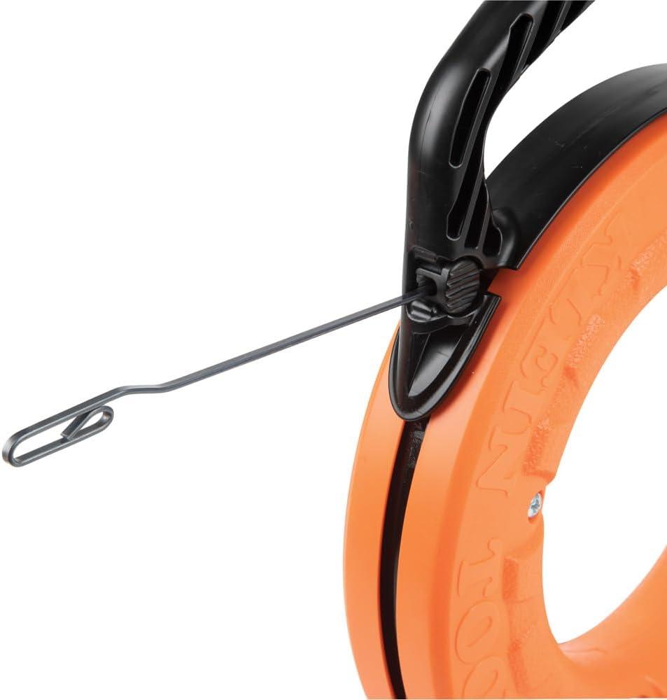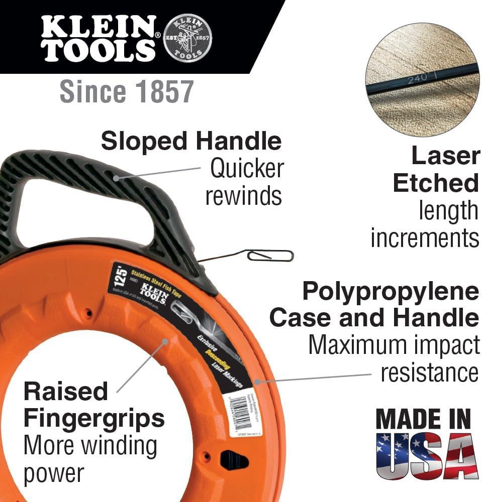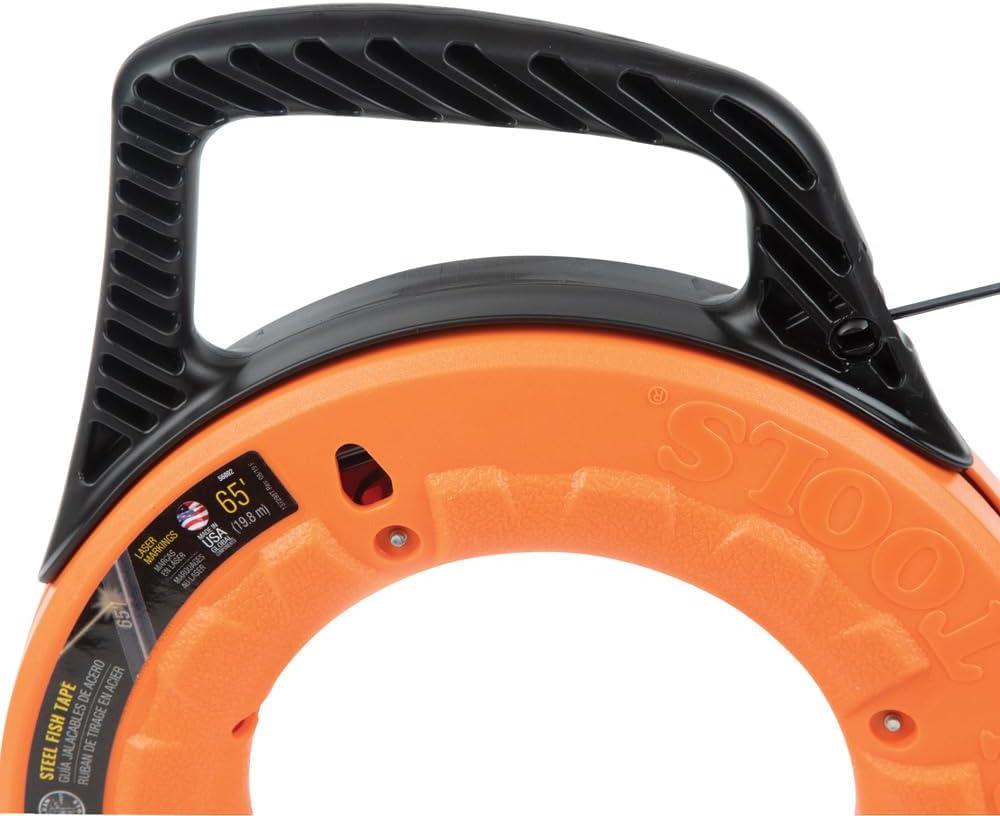 The Klein Tools 65-foot (19.81 m) steel fish tape features innovative permanent laser-etched markings. The tape is marked every foot in descending order allowing you to more accurately measure conduit runs and know how much tape is left to pay out. Raised finger grips on the case help transfer 100-percent of the winding power from your hands and fingers. For more than 160 years, Klein Tools has manufactured premium-quality, professional-grade hand tools that deliver the performance, durability and precision needed to get the job done right. Our family of engineers, workers and craftsman continue to put six generations of expertise into every tool we create by using only the highest quality materials, superior workmanship, and keeping manufacturing as close to home as we can. Klein isn't just the name of our company, it's also our family name. And since we're an American company that's family-owned and family-run, you know you can count on us to be here tomorrow. Klein Tools doesn't just make great products, we make great products that stand up to the demands of the professionals who use them every day … Since 1857.