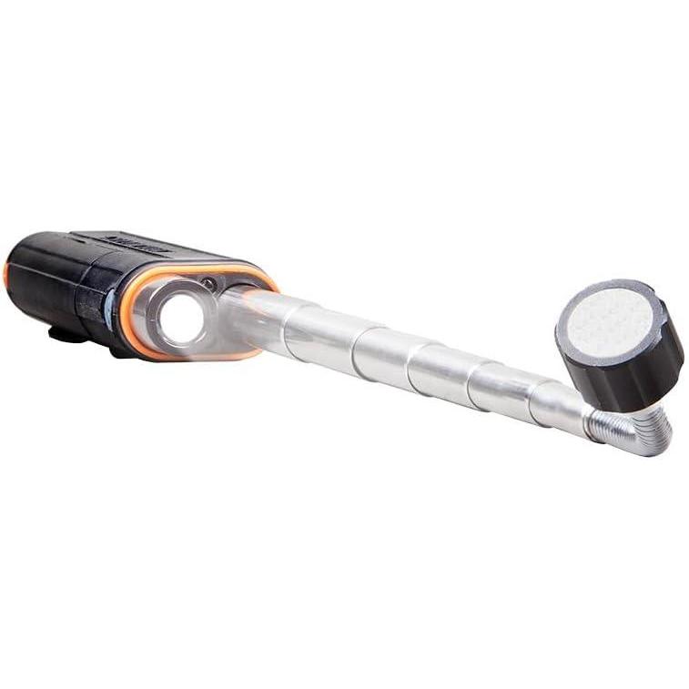 Klein's Telescoping LED Light and Pickup Tool allows you to retrieve any steel tool or part, particularly the ones that always seem to drop out of reach. The telescoping arm extends almost two feet, and the gooseneck end enables you to reach into tough spots. In low light, the LED provides illumination to guide you to your tool and back. The Telescoping Magnetic LED Pickup helps you reclaim your dropped tools, making it an essential addition to your tool bag.
