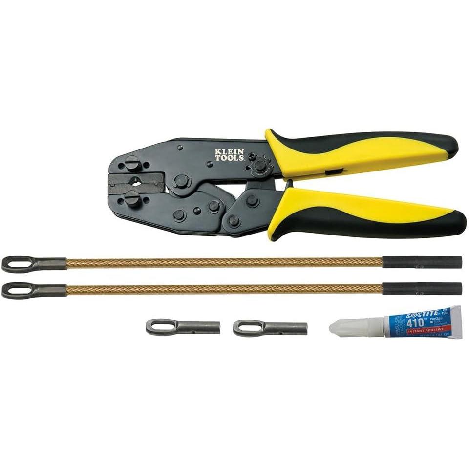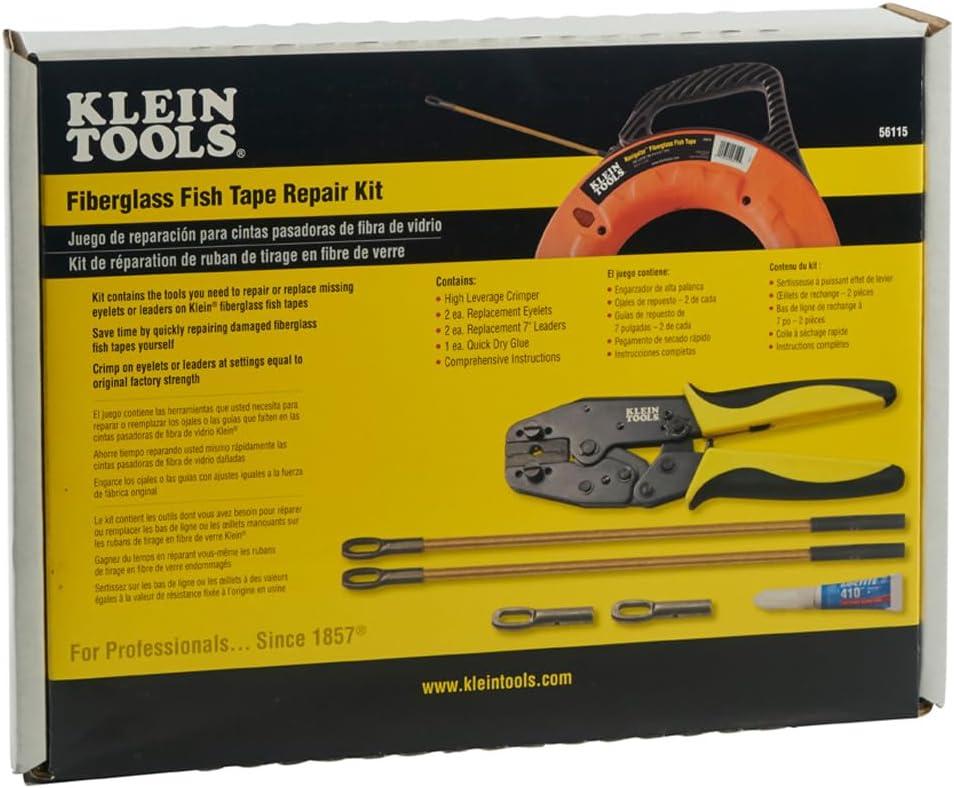This set contains everything you need to repair and restore Fiberglass Fish tapes. The multi-function ratcheting tool cuts and strips tape cleanly and crimps on new attachments. This is a staple tool for every wire-pulling professional. For more than 160 years, Klein Tools has manufactured premium-quality, professional-grade hand tools that deliver the performance, durability and precision needed to get the job done right. Our family of engineers, workers and craftsman continue to put six generations of expertise into every tool we create by using only the highest quality materials, superior workmanship, and keeping manufacturing as close to home as we can. Klein isn't just the name of our company, it's also our family name. And since we're an American company that's family-owned and family-run, you know you can count on us to be here tomorrow. Klein Tools doesn't just make great products, we make great products that stand up to the demands of the professionals who use them every day … Since 1857.