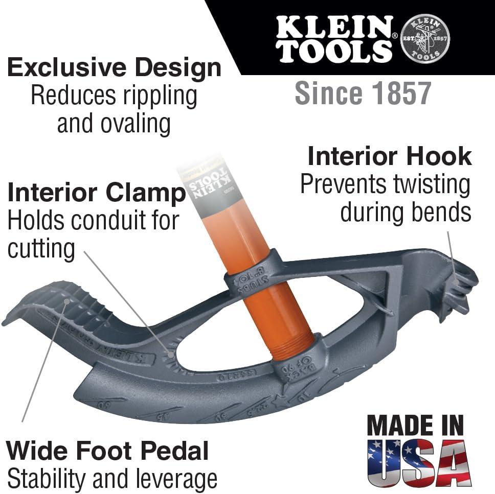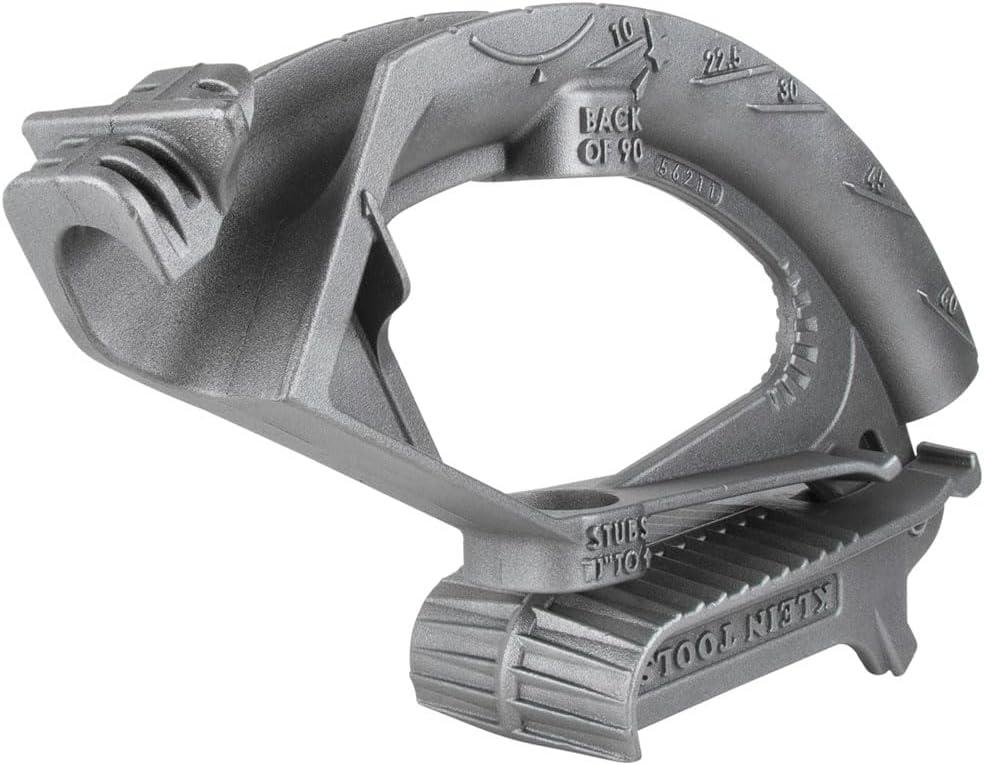 Klein Tools Conduit Bender Head is designed to handle thin wall EMT up to 1-1/4-Inch and rigid IMC up to 1-Inch thick. Made from Iron with Klein's advanced casting process for the ultimate in core strength and durability. This head works with the Klein Handle (Cat. No. 51429) which is sold separately. For more than 160 years, Klein Tools has manufactured premium-quality, professional-grade hand tools that deliver the performance, durability and precision needed to get the job done right. Our family of engineers, workers and craftsman continue to put six generations of expertise into every tool we create by using only the highest quality materials, superior workmanship, and keeping manufacturing as close to home as we can. Klein isn't just the name of our company, it's also our family name. And since we're an American company that's family-owned and family-run, you know you can count on us to be here tomorrow. Klein Tools doesn't just make great products, we make great products that stand up to the demands of the professionals who use them every day … Since 1857.