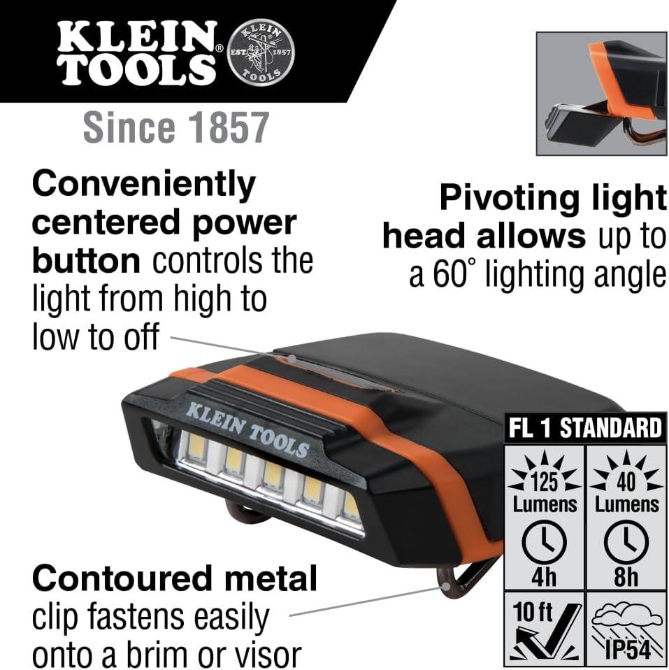 Klein Tools 56402 LED Light, Cap Visor Clip Light has Pivoting Head, 2xAAA Batteries, for Work, Running, Outdoor Hiking, Camping, Fishing