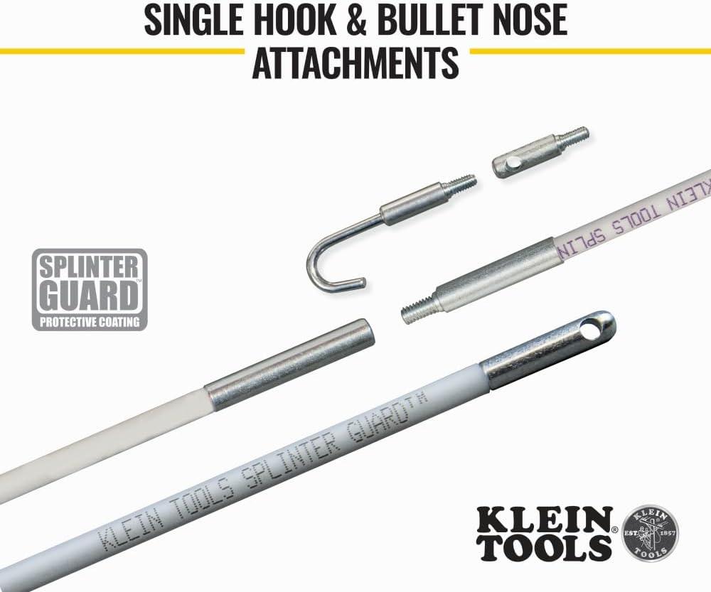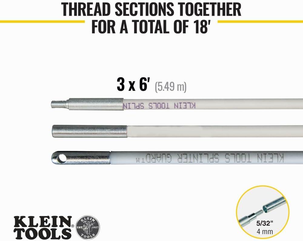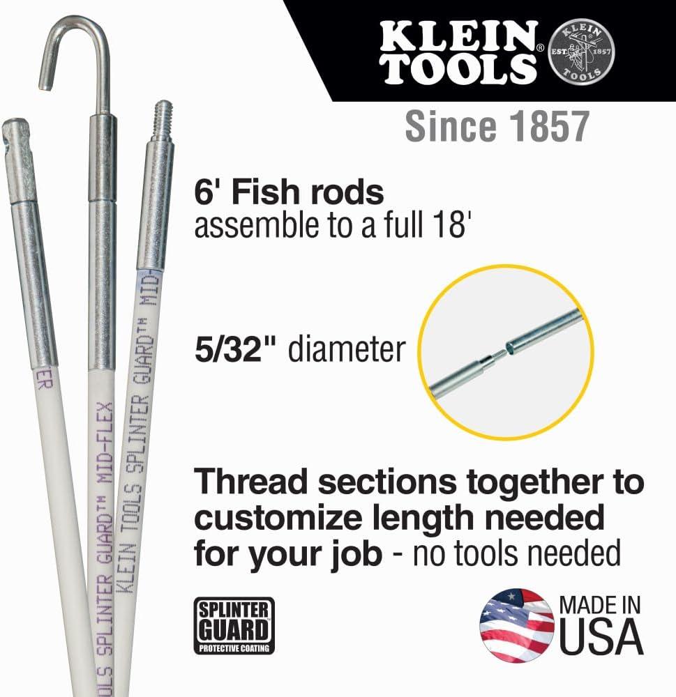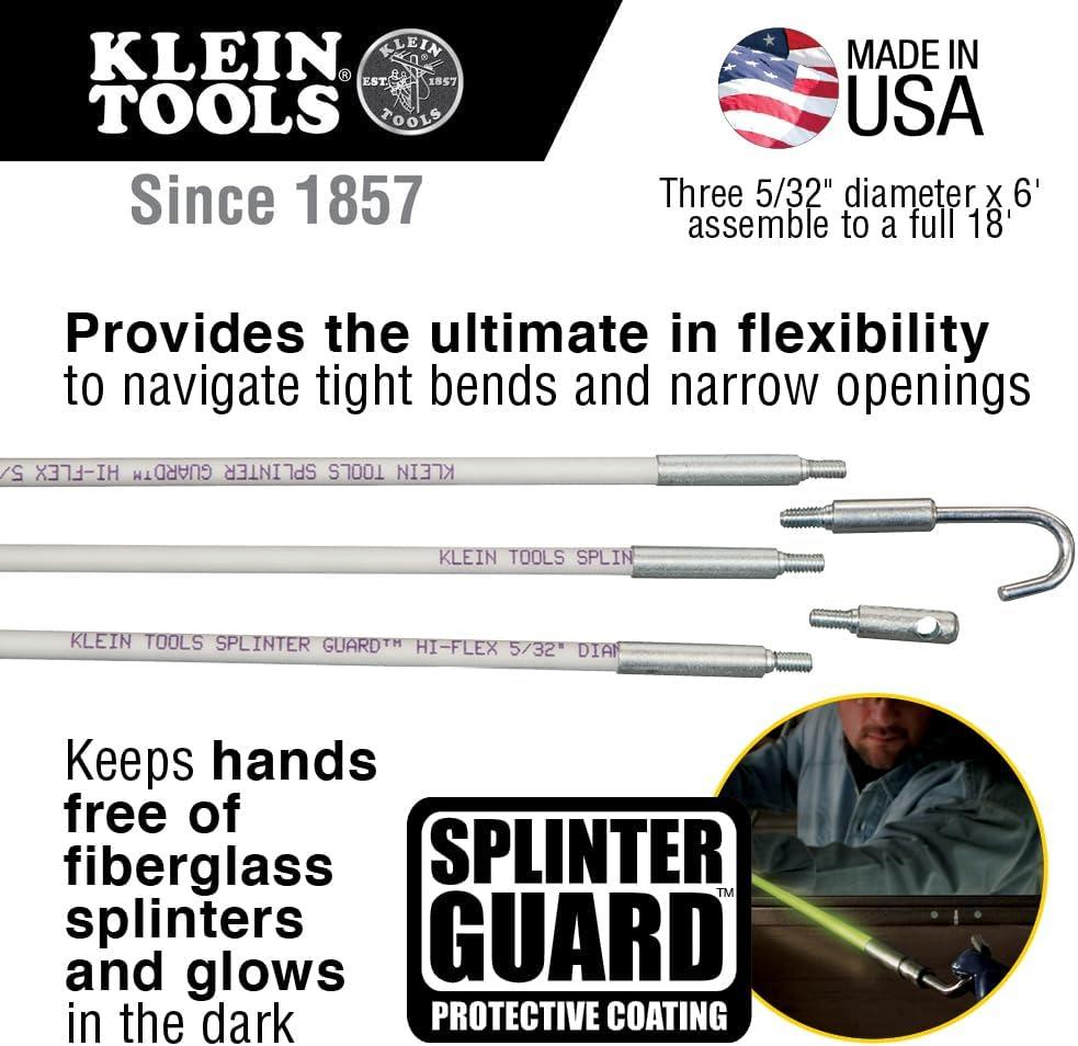 If you've ever used fiberglass fish rods, you know how painful and annoying fiberglass splinters can be. The protective coating on these fish rods guards your hands against splinters while the glow illuminates dark work spaces. Rods assemble to whatever length needed. Get the job done fast and keep your hands pain free with these general purpose fish rods. For more than 160 years, Klein Tools has manufactured premium-quality, professional-grade hand tools that deliver the performance, durability and precision needed to get the job done right. Our family of engineers, workers and craftsman continue to put six generations of expertise into every tool we create by using only the highest quality materials, superior workmanship, and keeping manufacturing as close to home as we can. Klein isn't just the name of our company, it's also our family name. And since we're an American company that's family-owned and family-run, you know you can count on us to be here tomorrow. Klein Tools doesn't just make great products, we make great products that stand up to the demands of the professionals who use them every day … Since 1857.