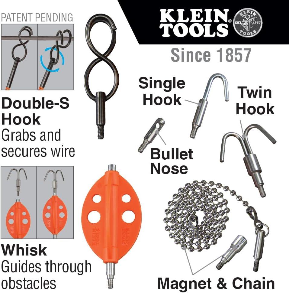 Klein Tools 56511 Splinter Guard Wire Fish Rod and Glow Rod Attachment Set with Double-S Hook and More 7-Piece