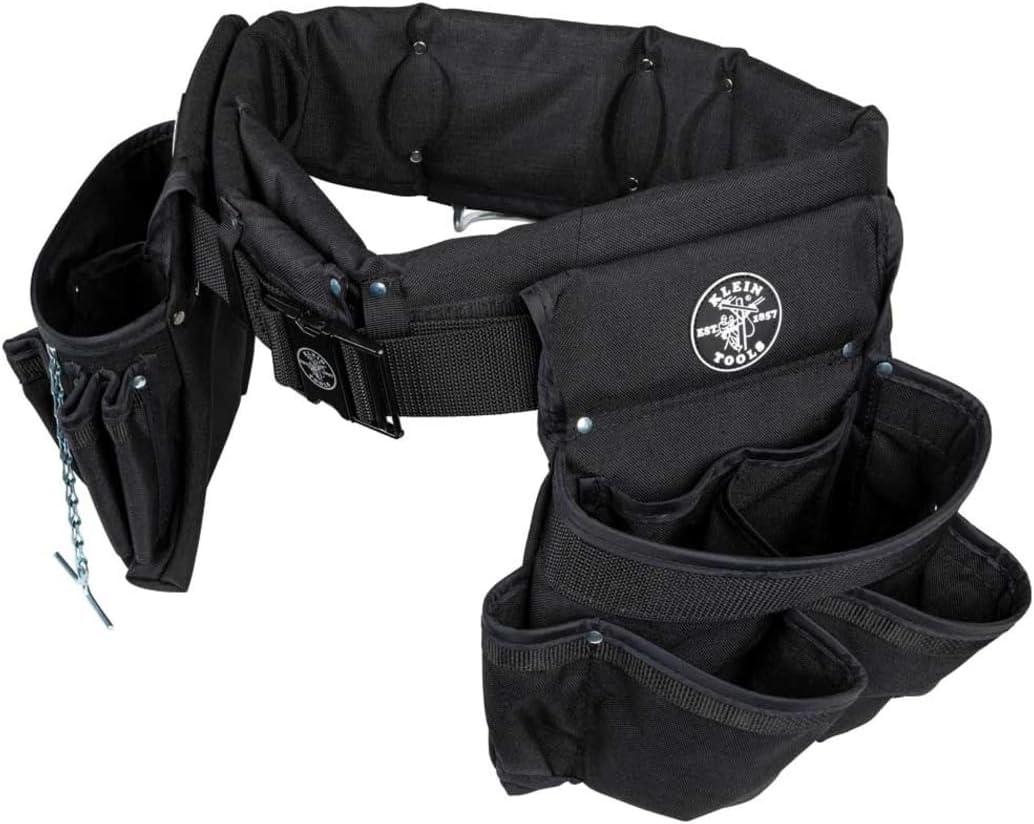 Klein Tools 5710L Electrician's Padded Tool Belt/Pouch Combo, 27 Pockets, 4-Piece, Large, Reinforced Bottom Pouches, Heavy Duty Nylon Webbing, Double Stitched(L)