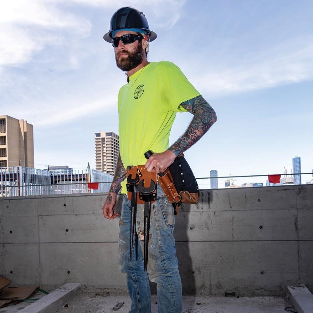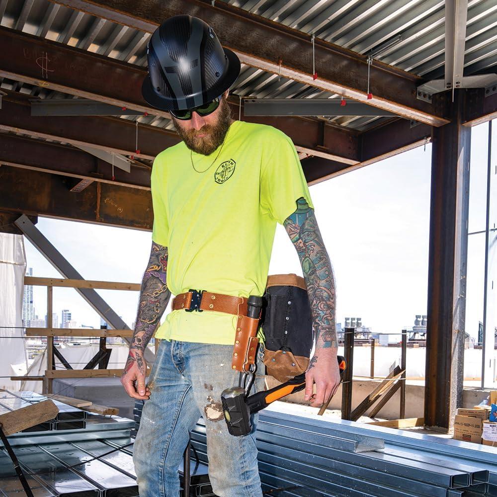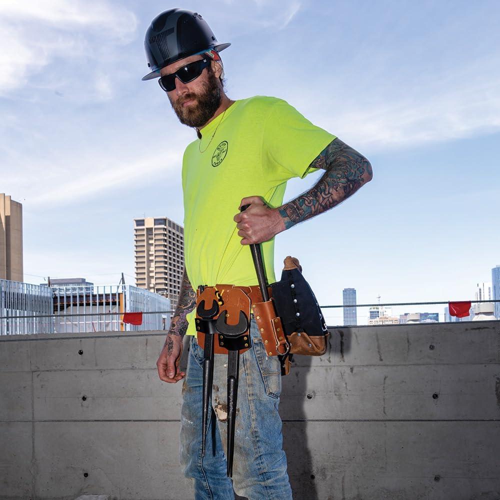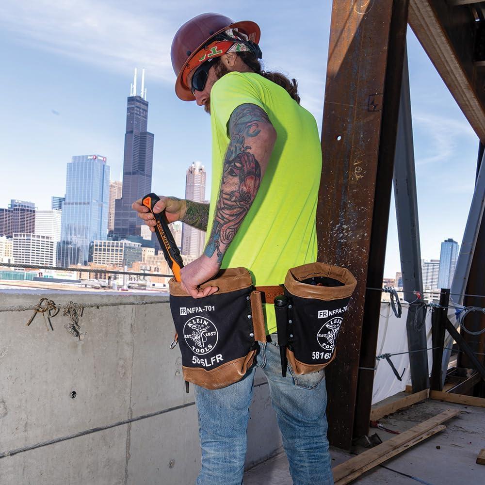 Klein Tools' Hybrid Leather and Flame-Resistant Bolt Bag ensures durability and convenience for trade professionals. Featuring a snap hinge rim for effortless tool access and secure closure, reinforced rim and bottom to endure daily use, and strategically placed straps with tunnel loops ensuring a snug fit around your harness. Manufactured in the USA with global components and certified to meet NFPA-701 flame-resistant standards for lasting performance in demanding work environments. For more than 160 years, Klein Tools has manufactured premium-quality, professional-grade hand tools that deliver the performance, durability and precision needed to get the job done right. Our family of engineers, workers and craftsman continue to put six generations of expertise into every tool we create by using only the highest quality materials, superior workmanship, and keeping manufacturing as close to home as we can. Klein isn't just the name of our company, it's also our family name. And since we're an American company that's family-owned and family-run, you know you can count on us to be here tomorrow. Klein Tools doesn't just make great products, we make great products that stand up to the demands of the professionals who use them every day … Since 1857.